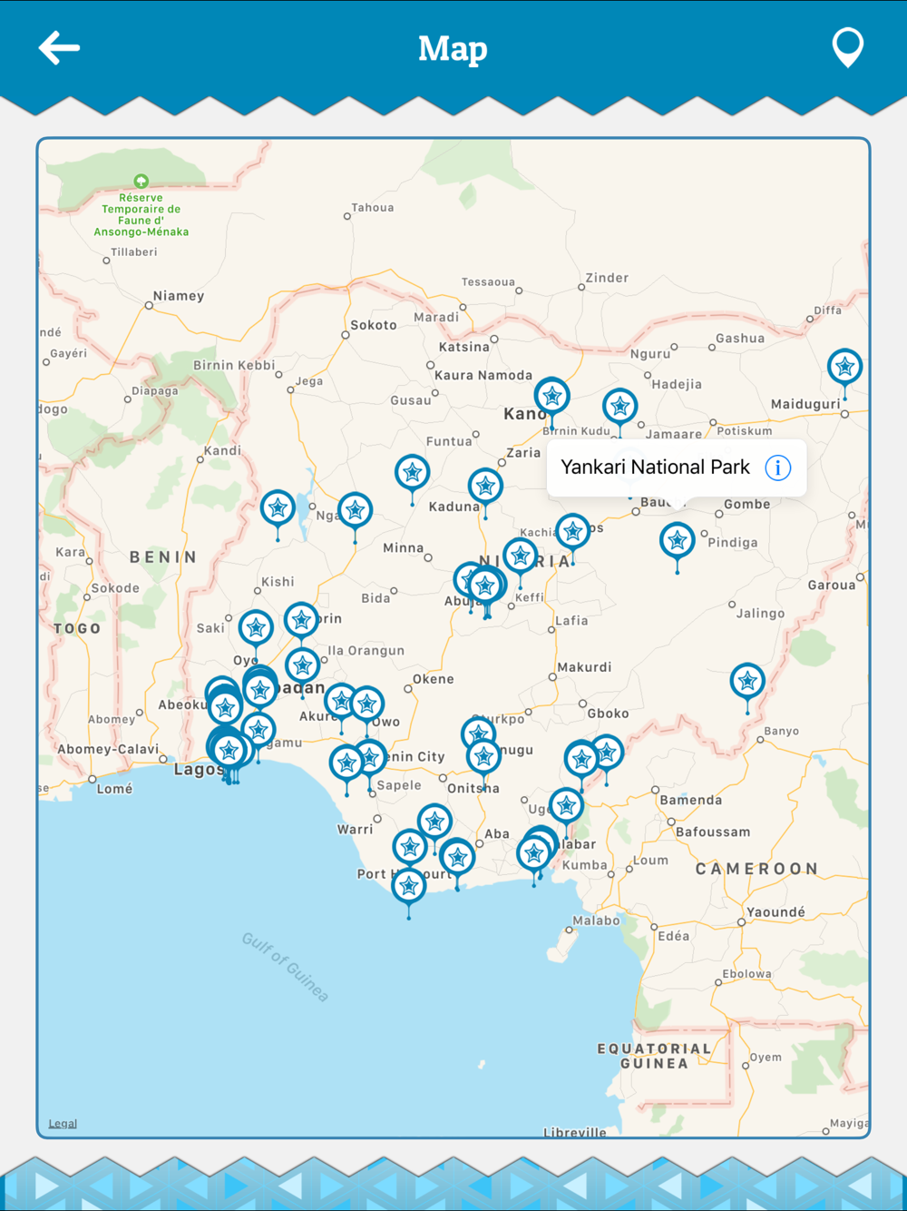 √ Once the user opens the Map, it points us the all Hotels and Attractions of Nigeria.