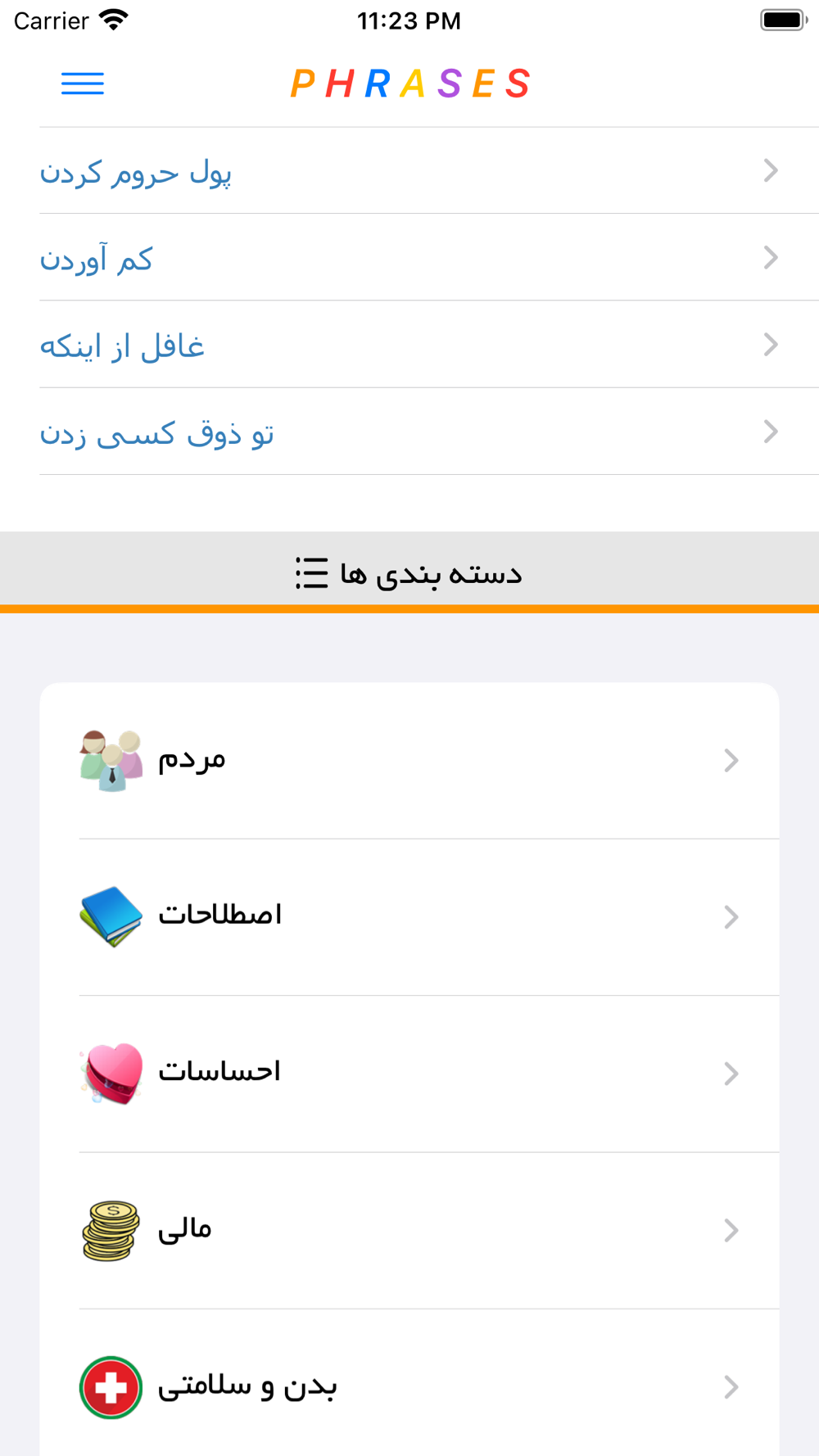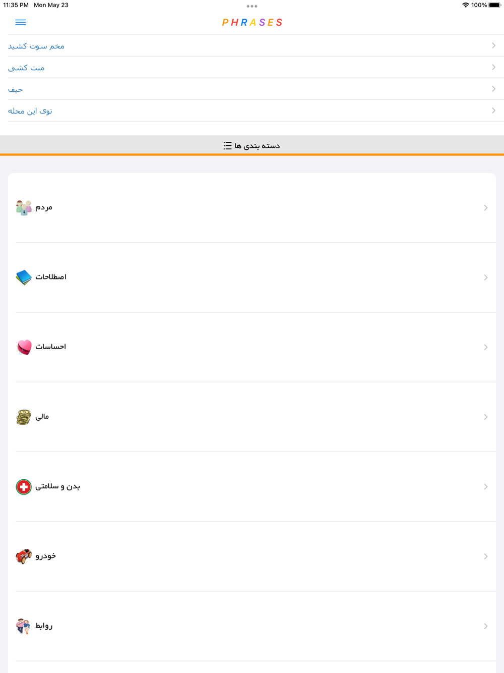 این برنامه شامل یک پایگاه داده شامل تقریبا 1000 جمله و اصطلاح رایج انگلیسی و معادل آنها در فارسی می باشد
