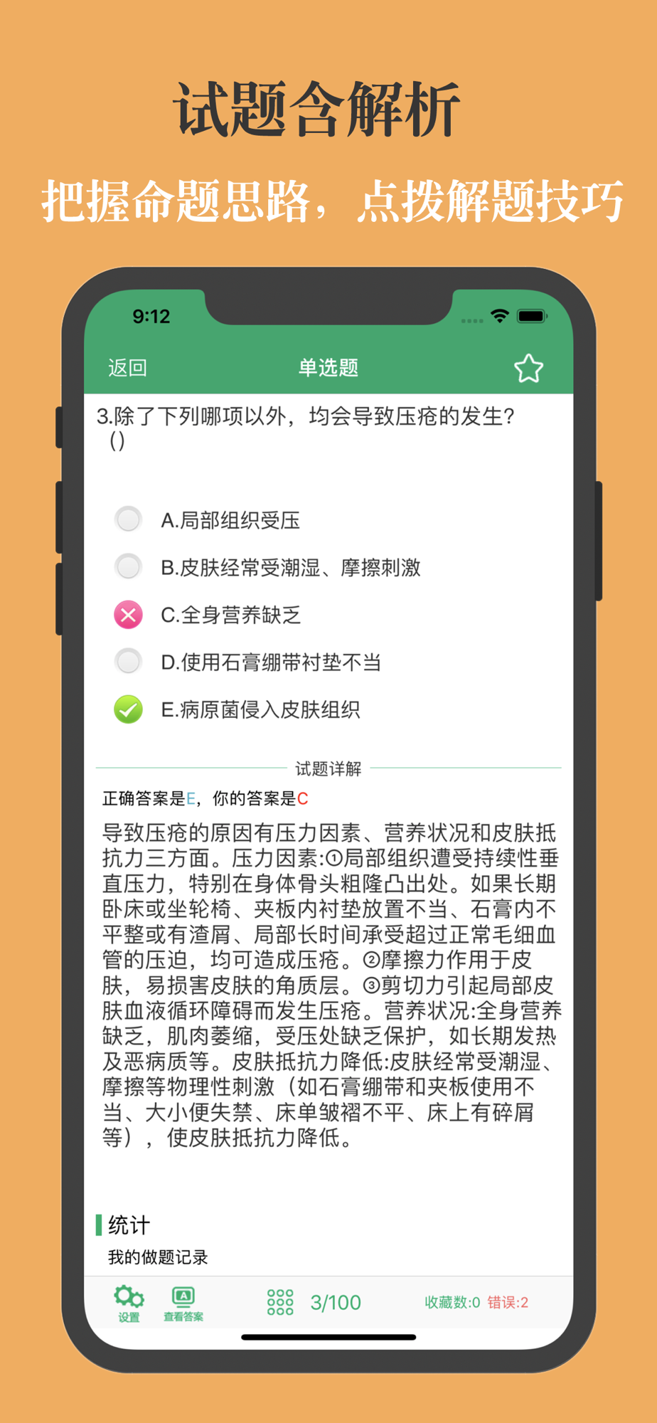 7、随机测试:随机生成100道试题随机测试,检验复习成果,可自动将错题加入到错题库。