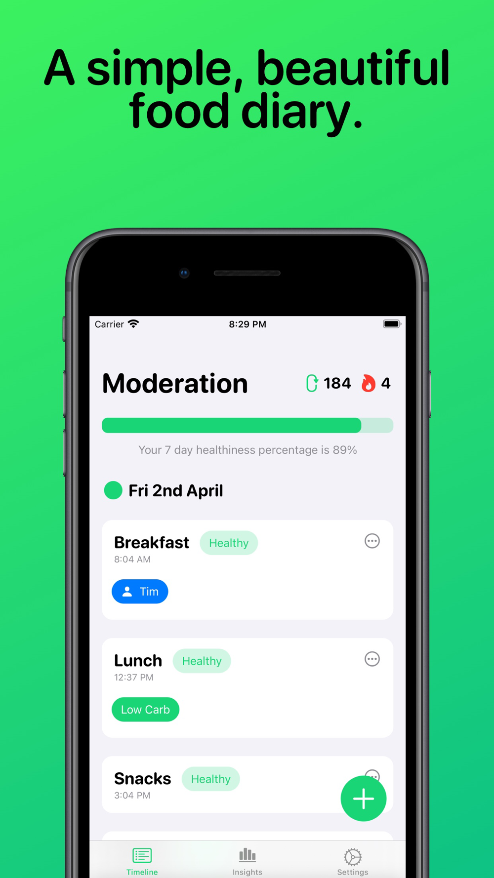 Moderation isn’t just a meal tracker though, it also presents you with actionable insights. This allows you to be more mindful about your choices, but without the restrictive living of calorie counting.