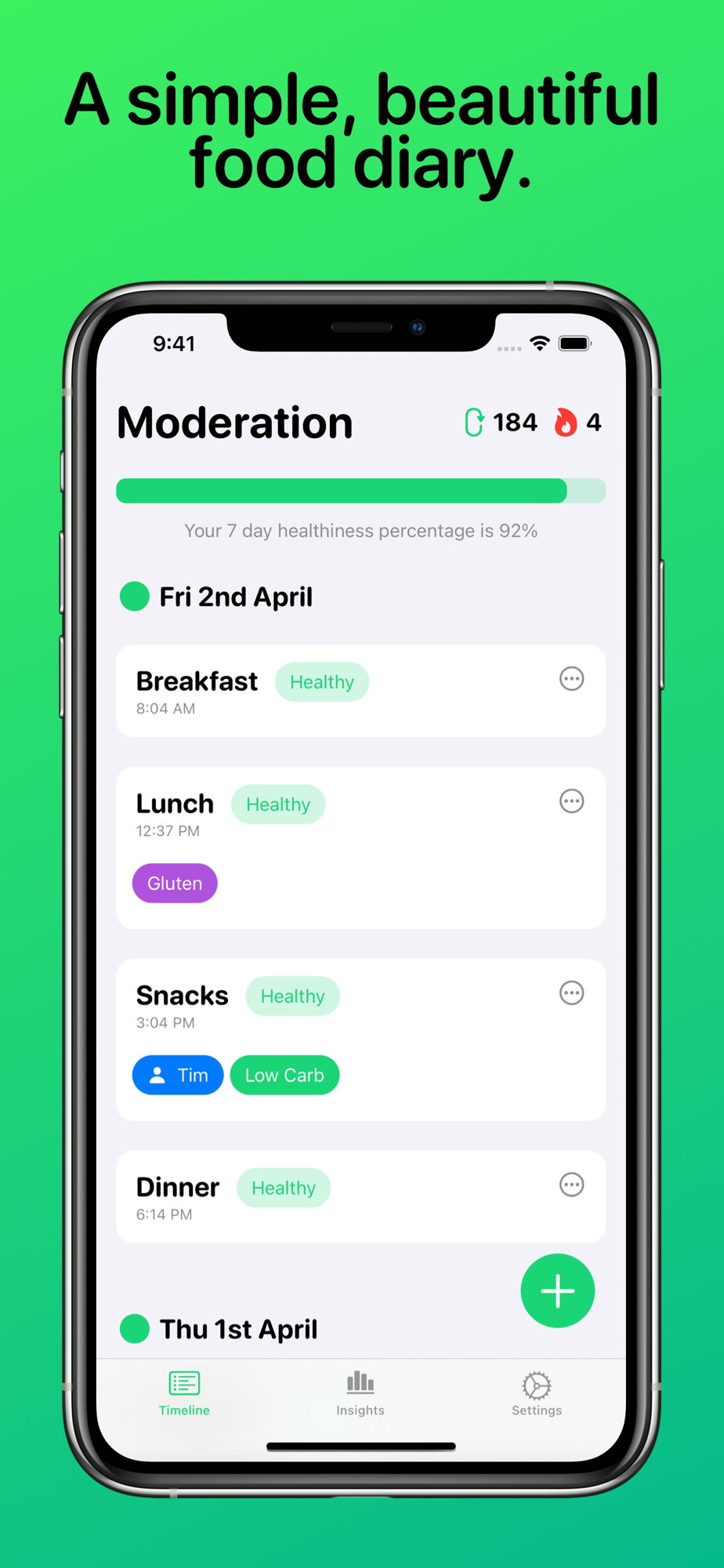 Moderation isn’t your normal diet app or calorie tracker - it’s the world's simplest food diary. If you are looking for an alternative to calorie counting, then download Moderation for free today to start using our great features: