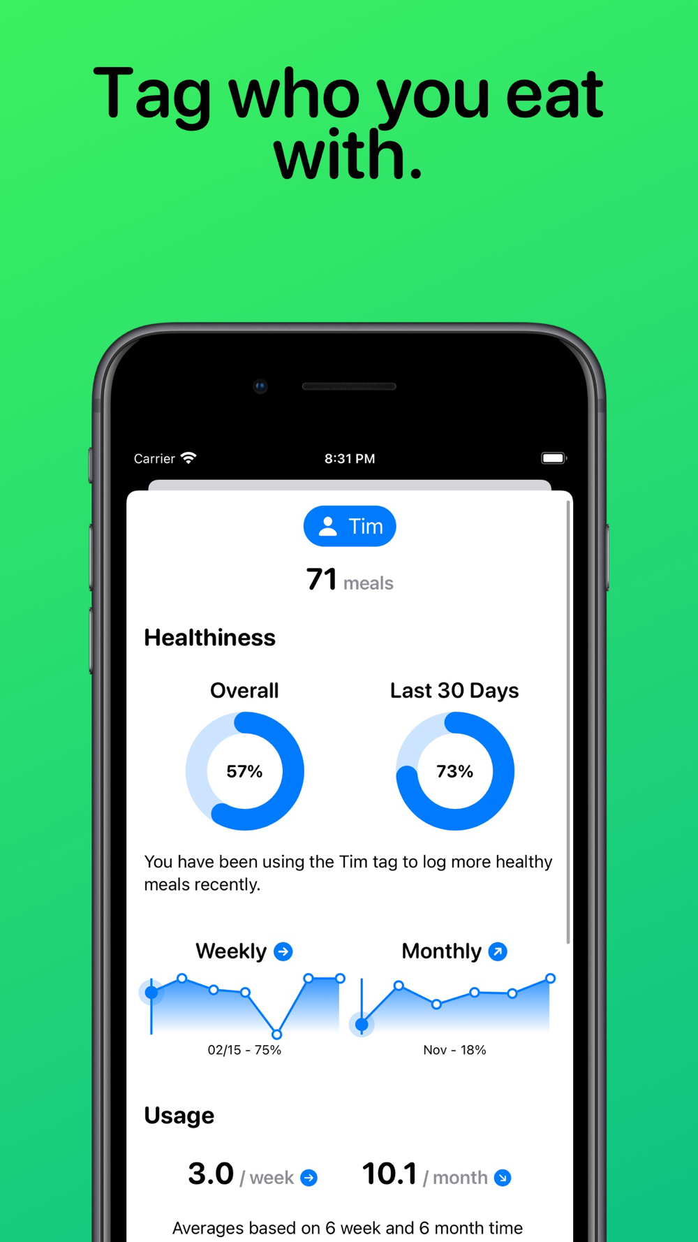 * Tag people you eat with to understand how they can impact on your eating choices.