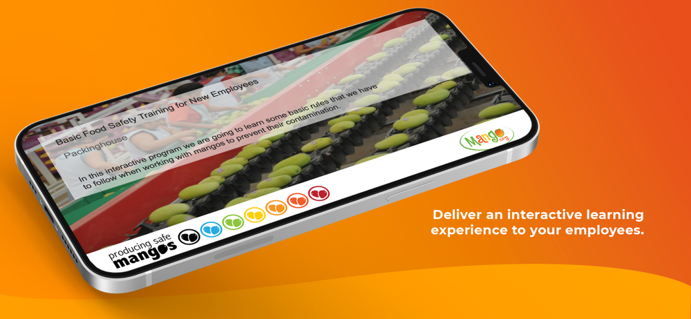 The application contains 15 basic food safety areas in which employees must be trained upon hiring. This App was developed by Food Safety CTS, LLC for the National Mango Board to be used by the Mango Industry with employees at the time of hiring, prior to starting work in the Packinghouse.
