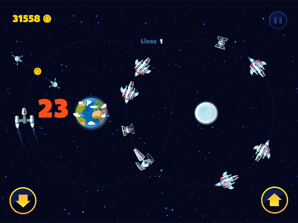 Simple and fun space game. Fly in circles and avoid crashing into the enemy ships. Survive as long as you can. Speed up or slow down, just don't crash and have fun. Challenge yourself and reach the highest star rank. Can you unlock and fly with all the spaceships available? Get ready, pilot!