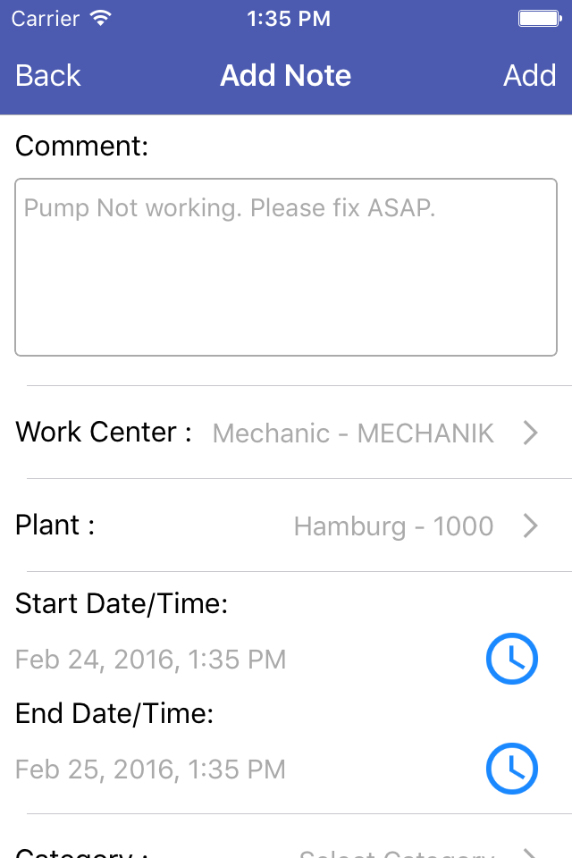 2. Create logbook entries and associate the entries with Plant, Work Centre, Category and Equipment