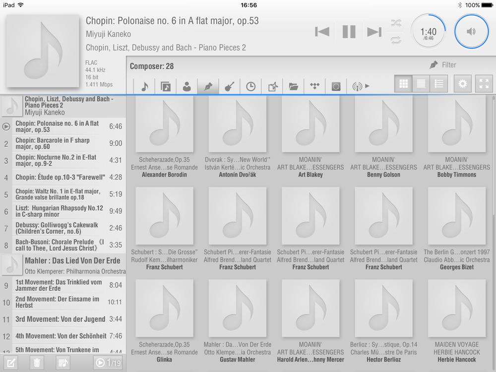 Since images are also cached in the app, album artwork can be instantly scrolled through and libraries can be freely sorted into such classifications as artist, year of recording, composer or category.