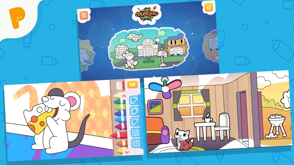 让宝宝们在七个沉浸式世界中学会创造,通过绘制可爱的字符和场景,认识他们周围的世界(从城市生活到农场公园)。只有完成涂色,才能解锁对应场景后面的动画!