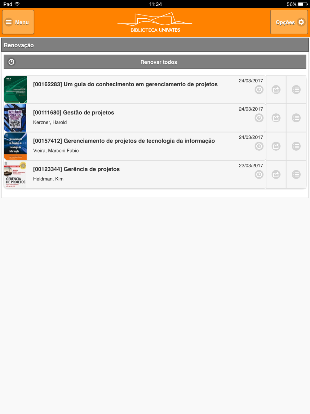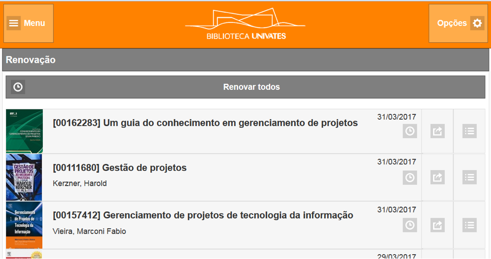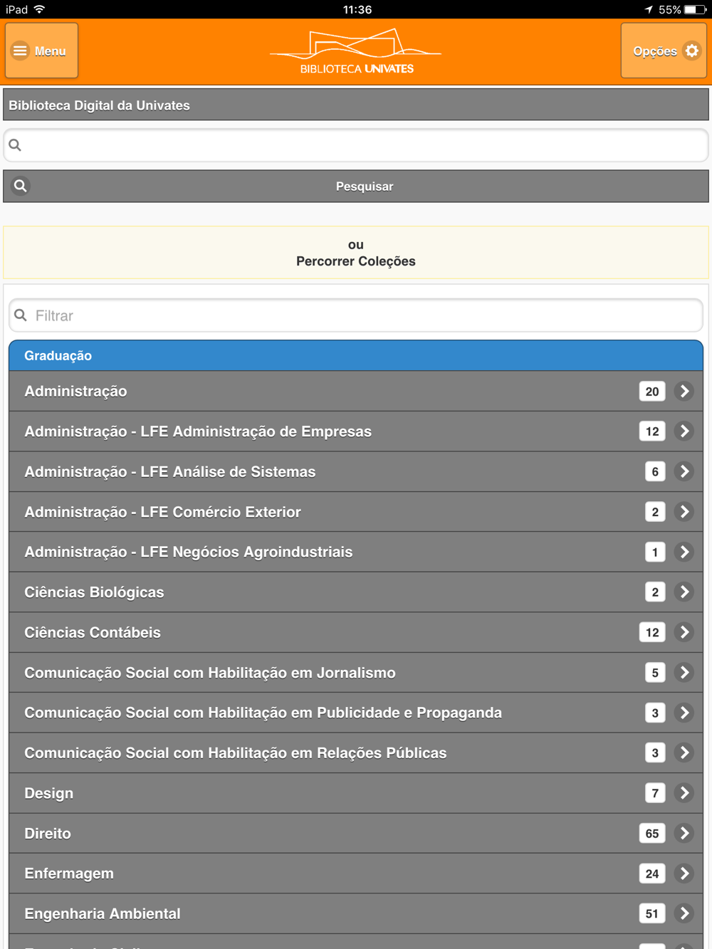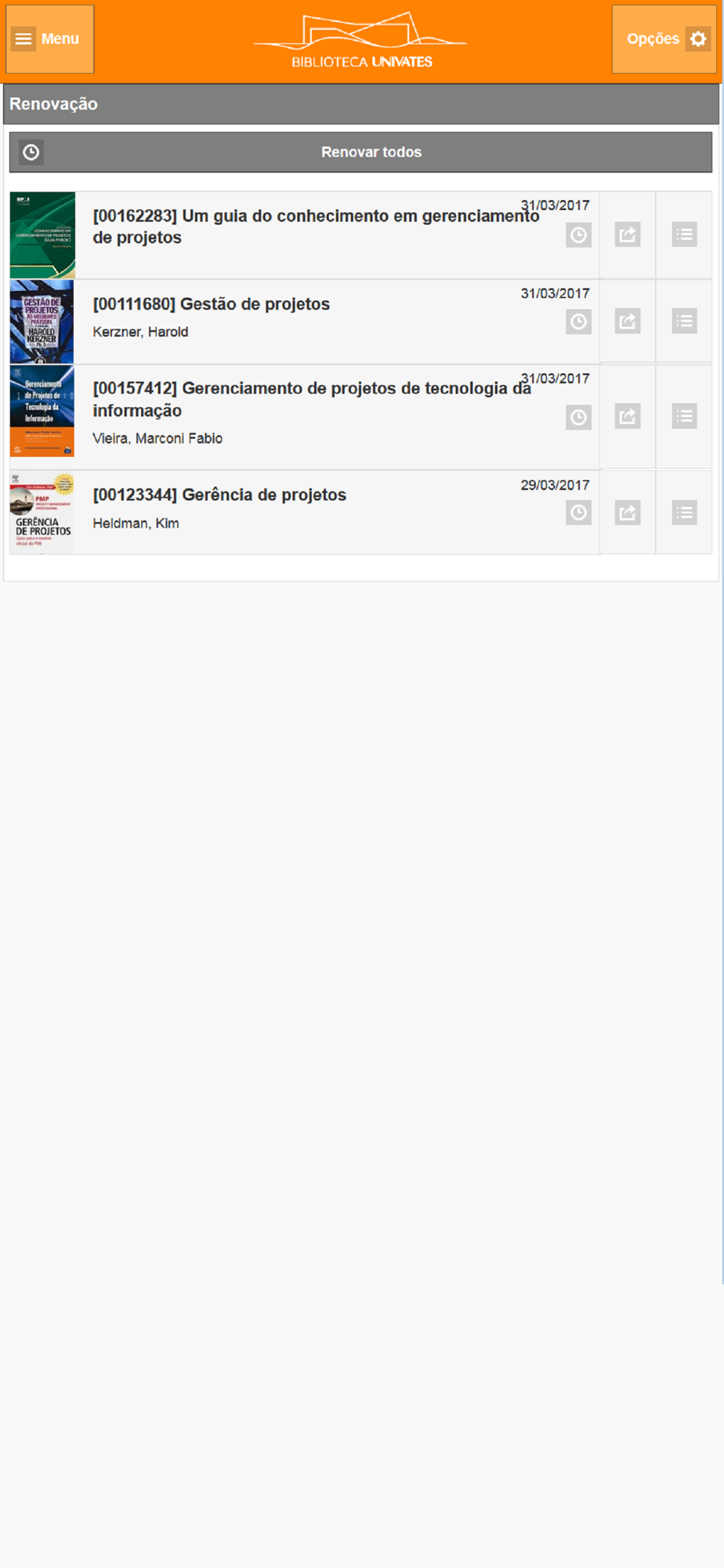 O aplicativo da Biblioteca da Univates permite você ter acesso as principais informações da biblioteca diretamente de seu dispositivo móvel. Este aplicativo notifica os usuários em relação a empréstimos para renovação, empréstimos em atraso, reservas para retirada, dentre outras informações relevantes da biblioteca. É possível também pesquisar diretamente do catálogo da biblioteca, visualizando as informações de maior relevância e facilitando a localização dos materiais através de um mapa do acervo. Nele você pode também gerenciar uma lista de materiais, visualizar reservas e empréstimos, assim como efetuar renovações, reservas e cancelamento de reservas.
