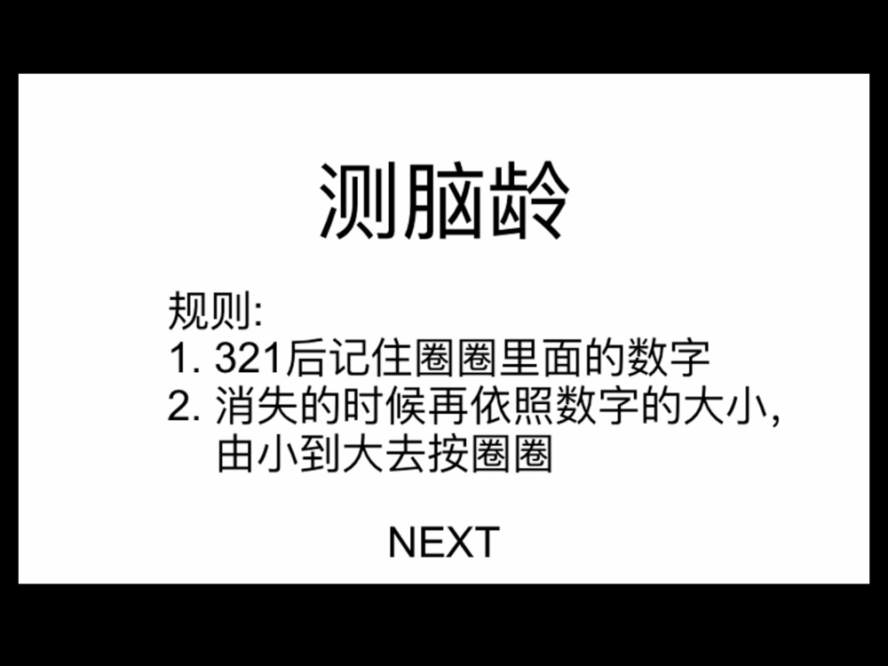 操作方法:规则,在倒计时3、2、1时观察数字,记住它们,再按照从小到大的顺序点击。