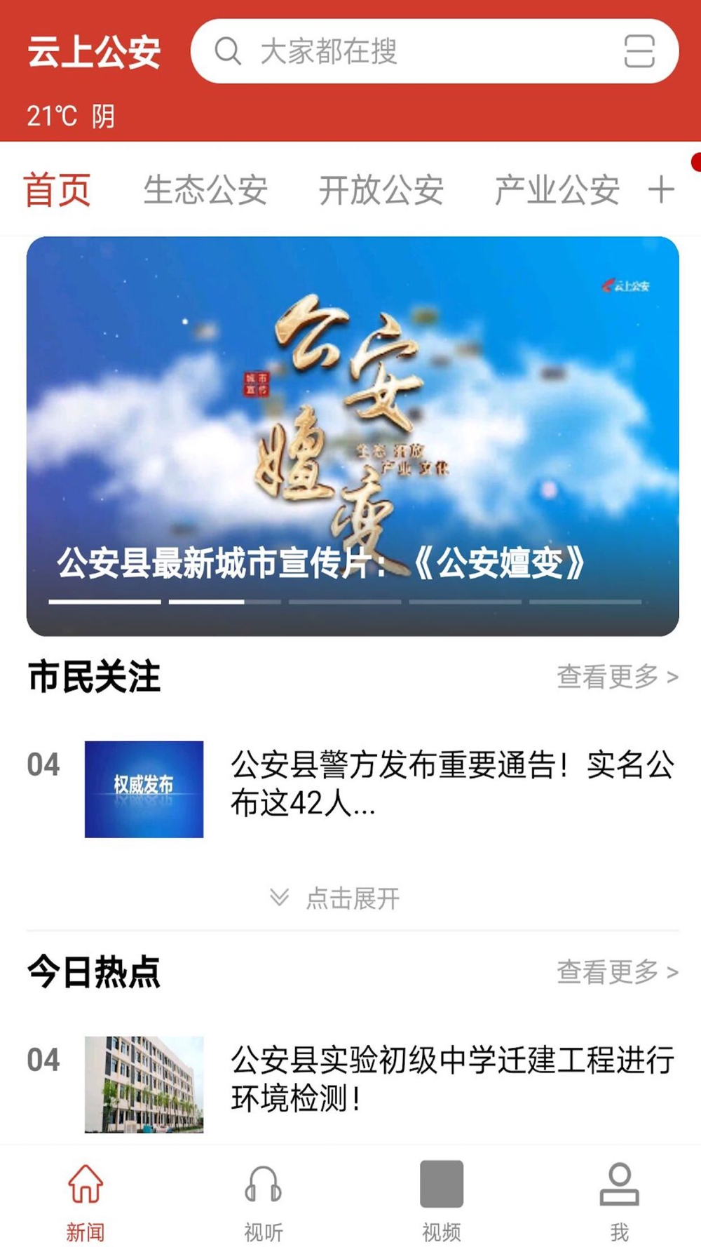 云上公安是公安县委、县政府指定的移动政务客户端,整合省内、市(县)新闻、政务、服务,打造本地权威入口。