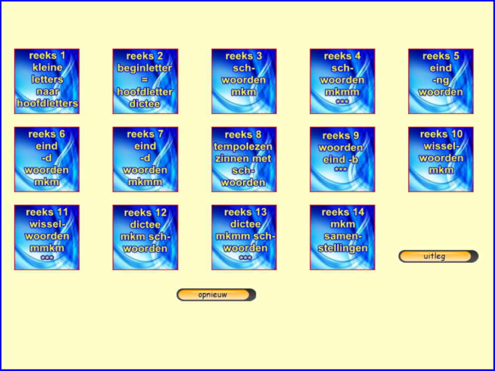 Deze reeks oefeningen volgen de leesmethode Veilig Leren Lezen van uitgeverij Zwijsen (een veelgebruikte leesmethode in België en Nederland). De oefeningen volgen de 2de maanversie. In deze kern 7 leert uw kind de hoofddrukletters, sch- woorden, de eind –ng klank, mmkm- en mkmm- woorden, woorden met eind –d en eind –b, samenstellingen zoals ‘zakmes’ en woorden zoals ‘eik, kou’. . Ik heb deze oefeningen gemaakt steunend op mijn 25 jaar ervaring als leerkracht 1ste leerjaar. De meeste oefeningen worden zowel visueel als auditief ondersteund. De oefeningen die aangeduid zijn met ‘***’ zijn wat moeilijker. Billiau Danny.