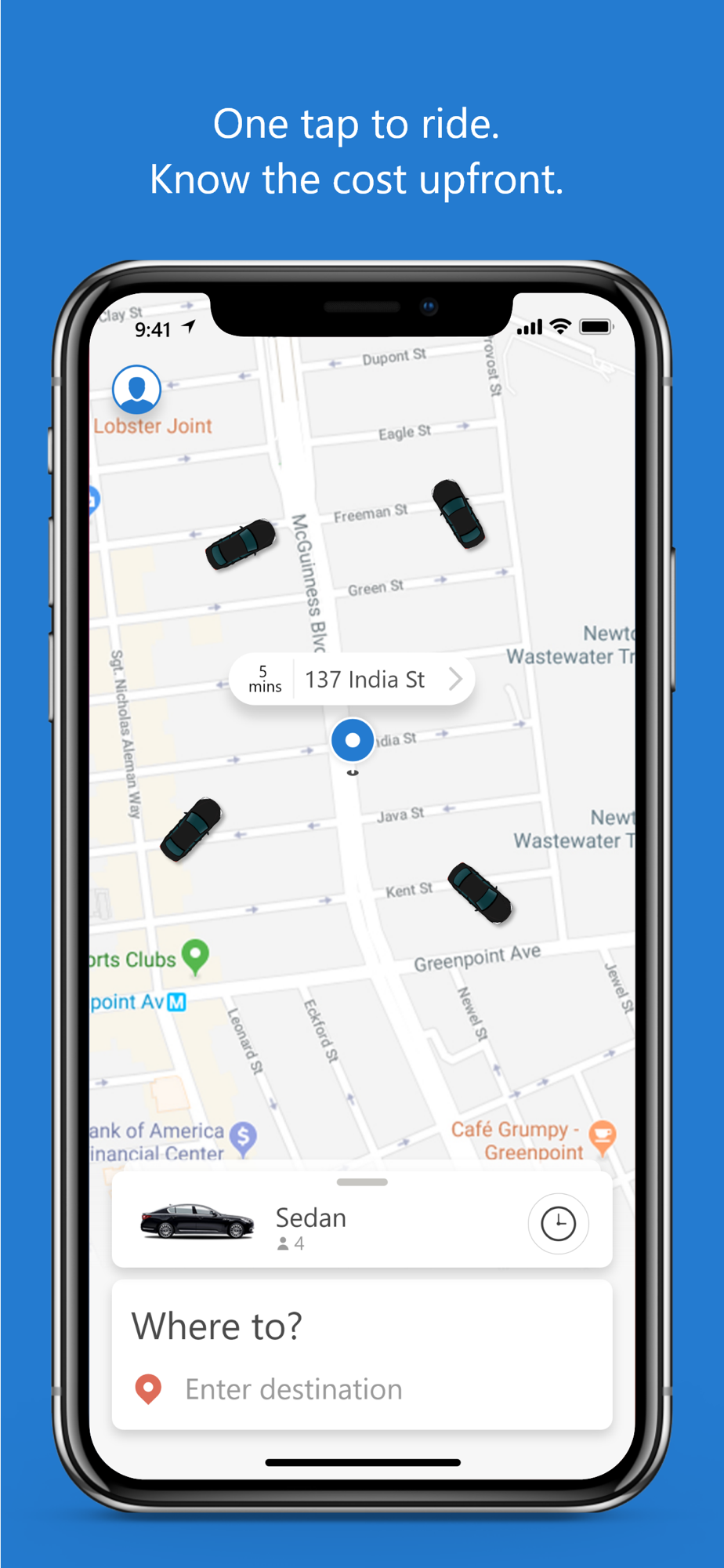 • Request an on-demand or in-advance ride in seconds