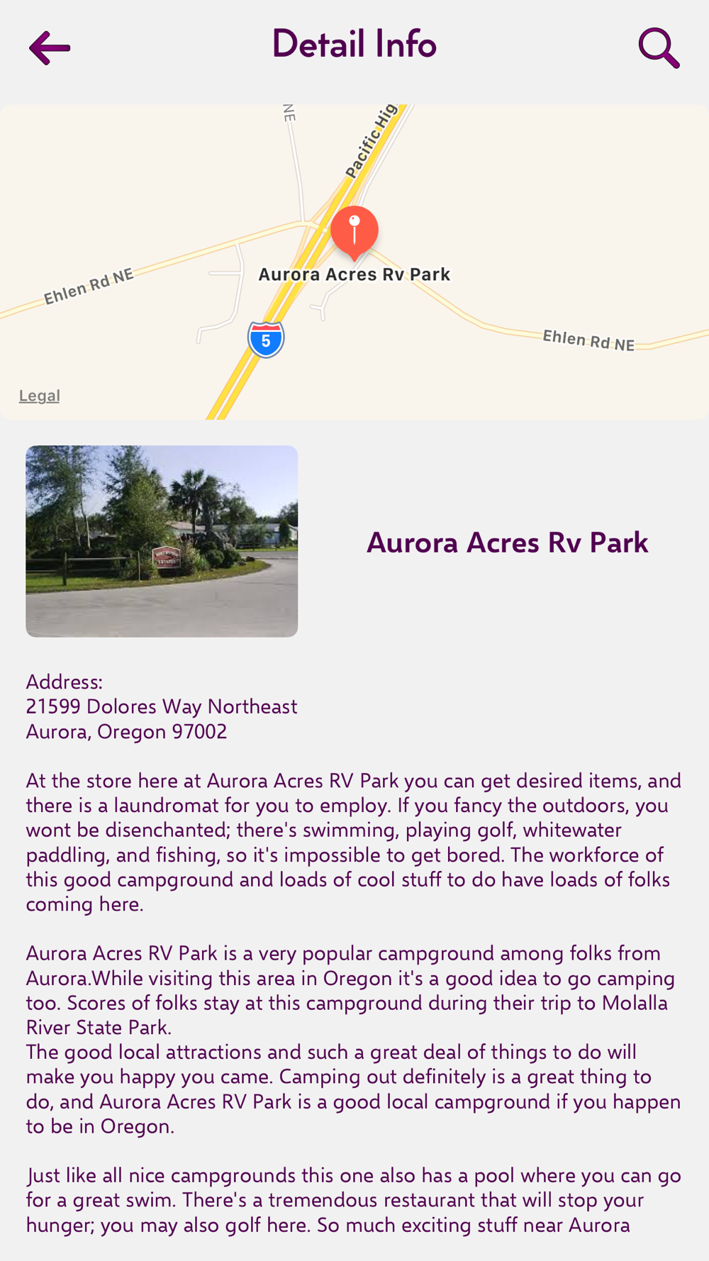 Campground Info # Amenities # Address # Description # Map # Directions # Pictures # Near Search # Route Map