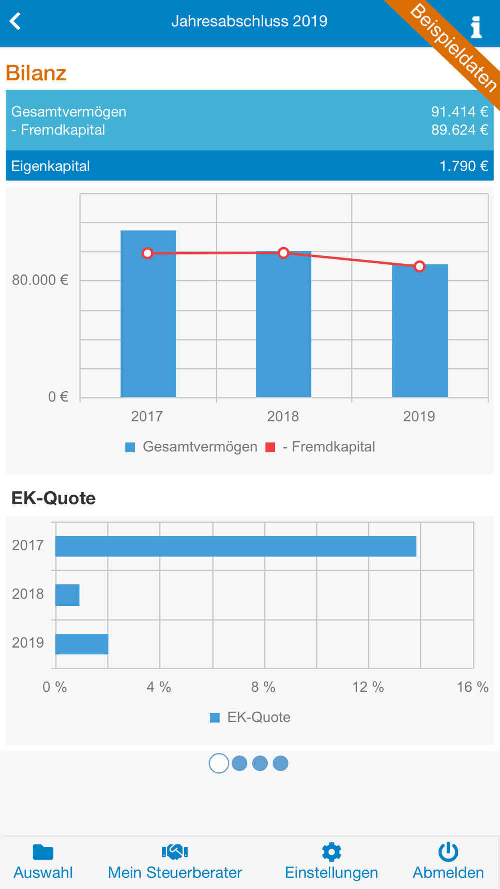 Um sich ein Bild von der Darstellung und den Funktionen zu machen, können Sie auch erst einmal die App installieren und sich die integrierten Beispieldaten ansehen.