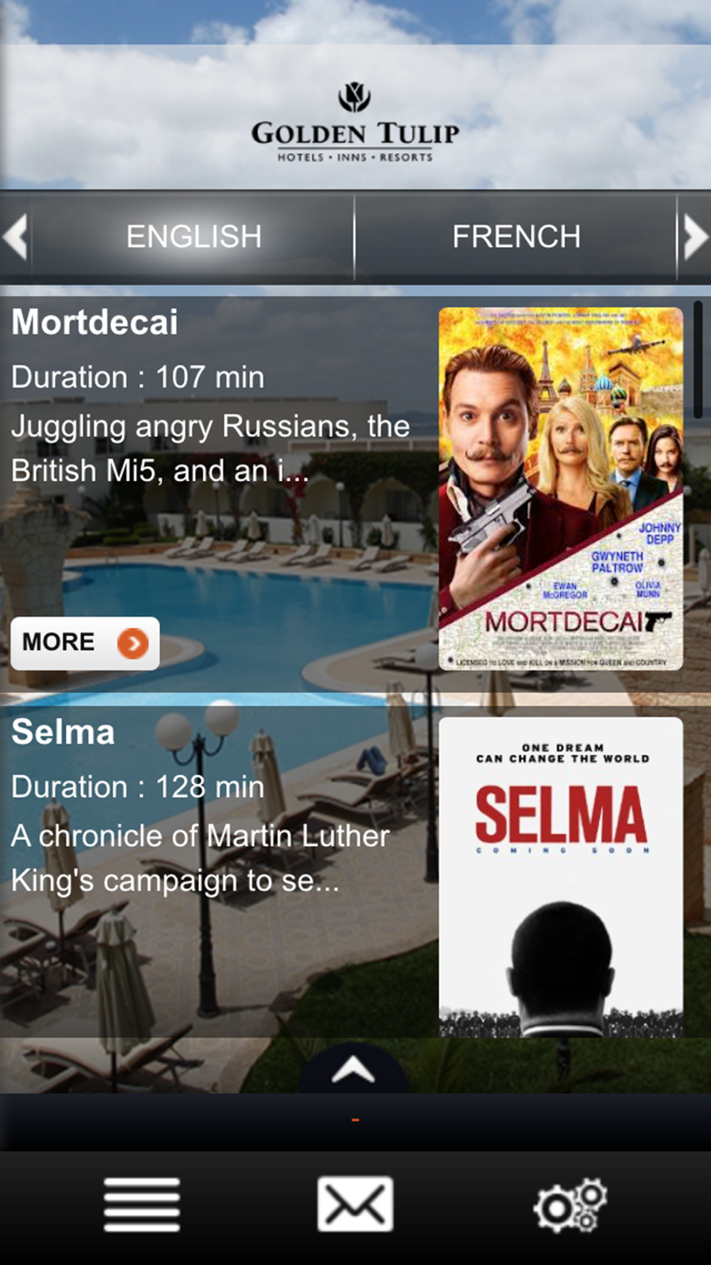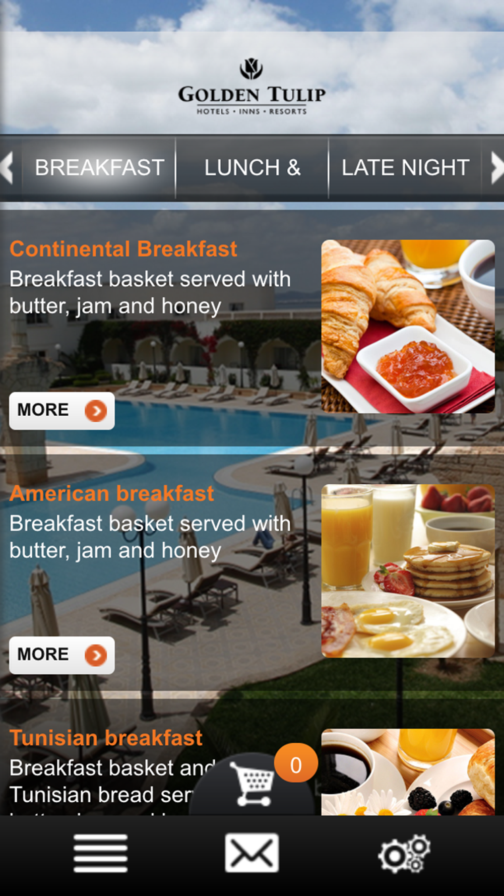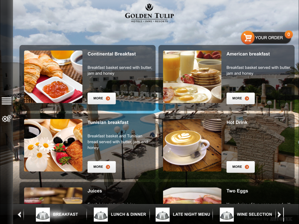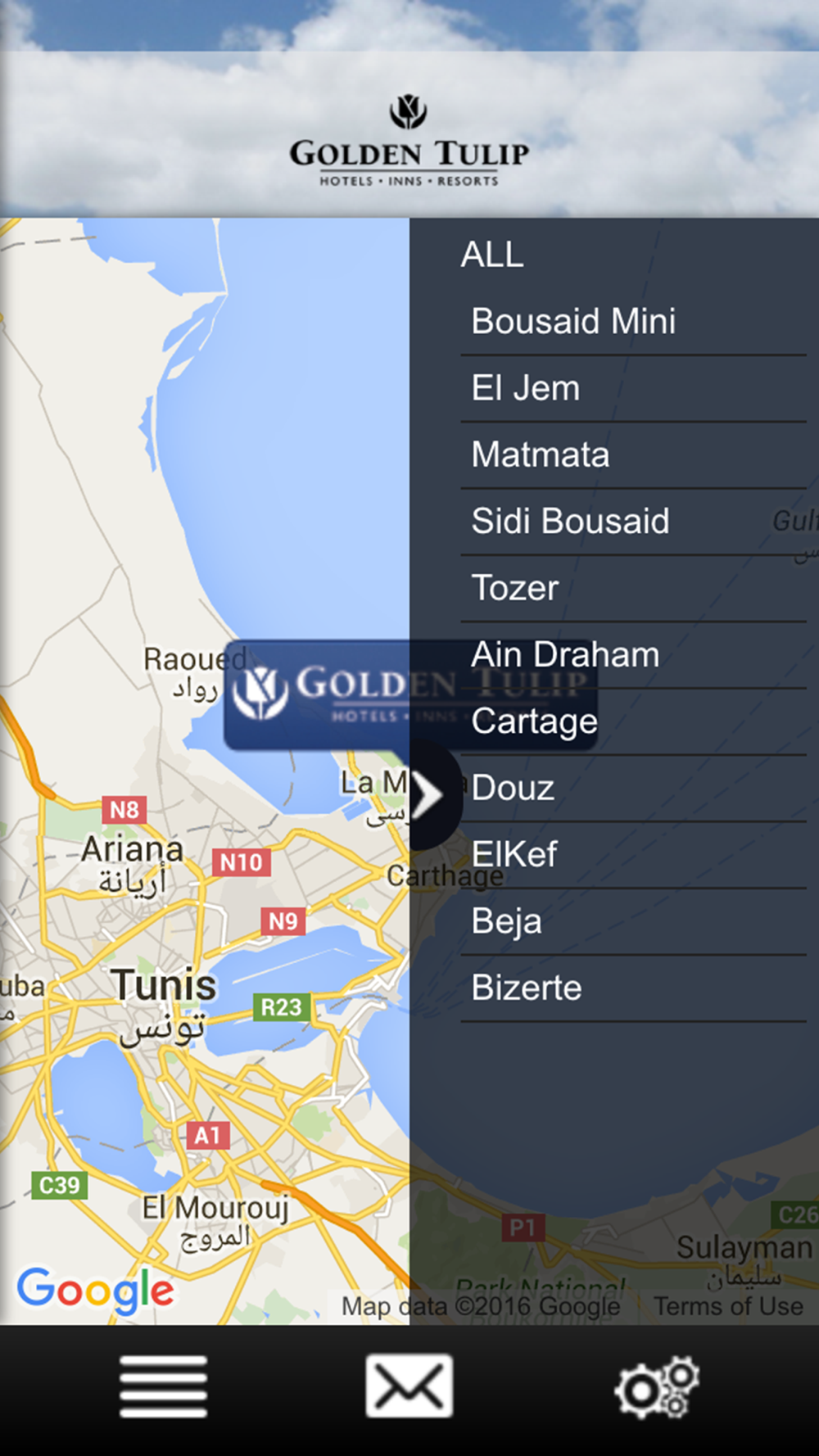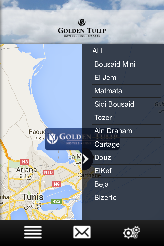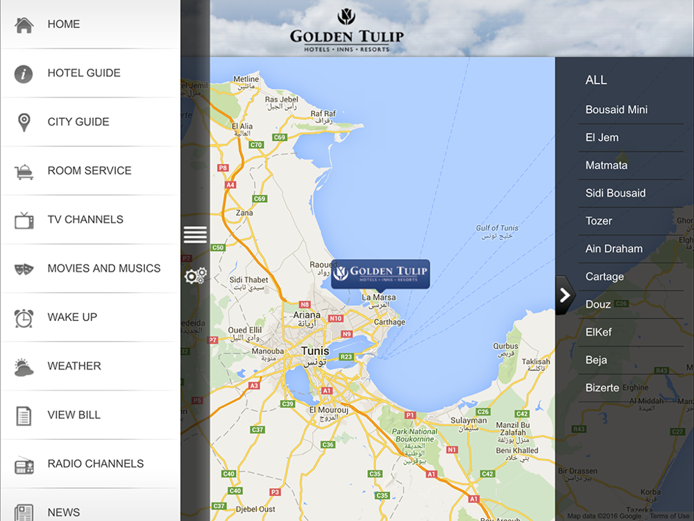 The Hotel Golden Tulip Carthage Tunis App is the hotel application which provides our guest services during their stay, before arrival and after check-out.