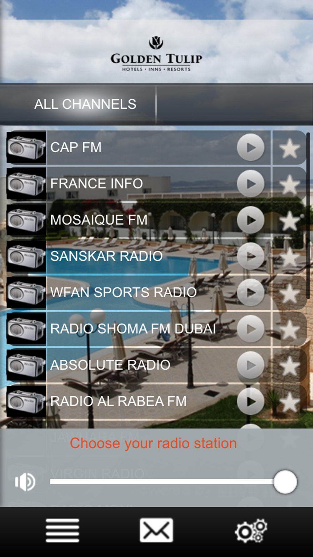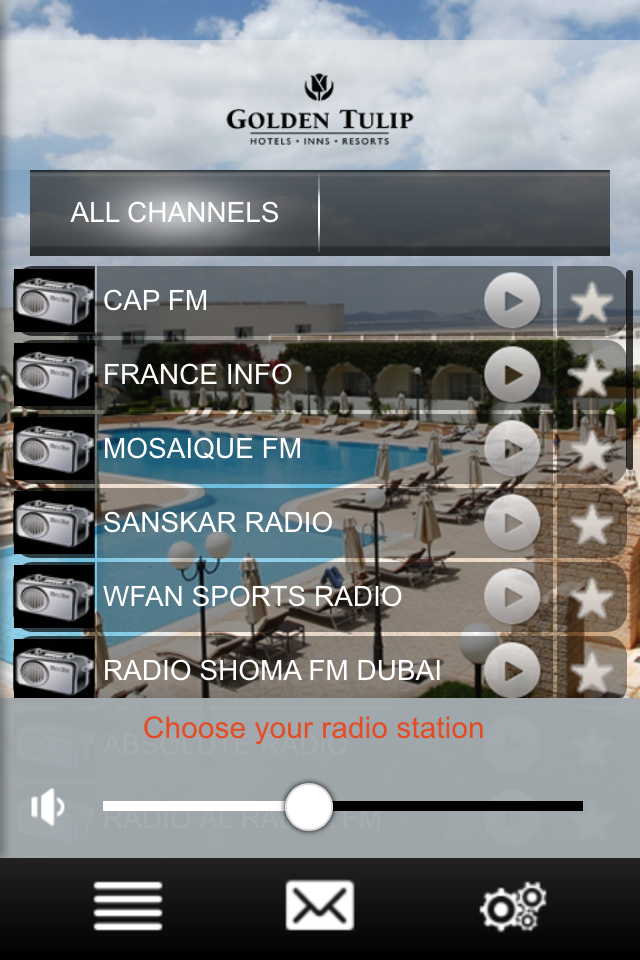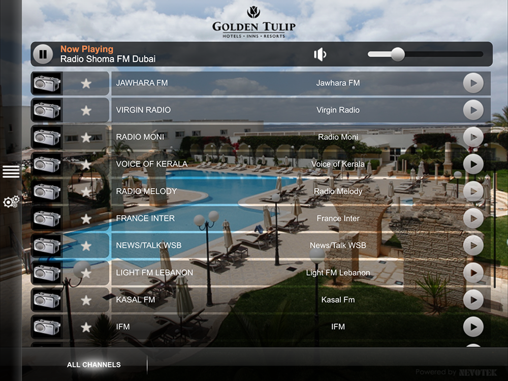 - Tune in to a radio channel of choice from the online radio list provided by the hotel
