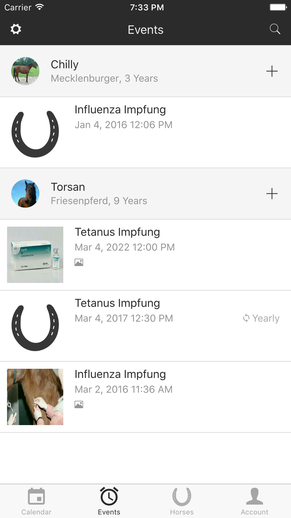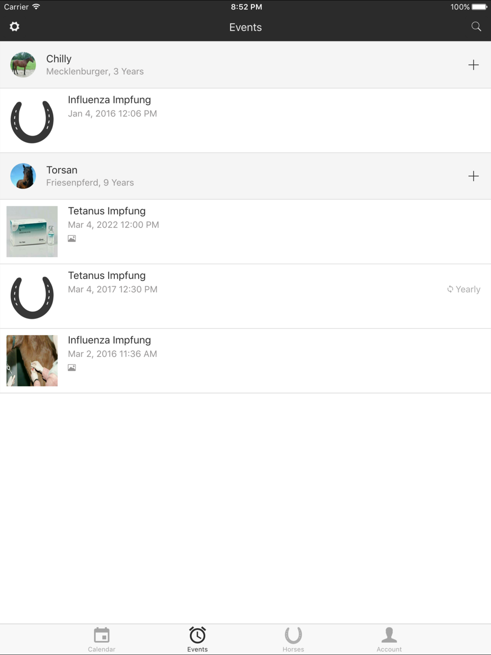 The "Horses" app is easy to use and gives you a quick overview of all regular appointments regarding your horses.