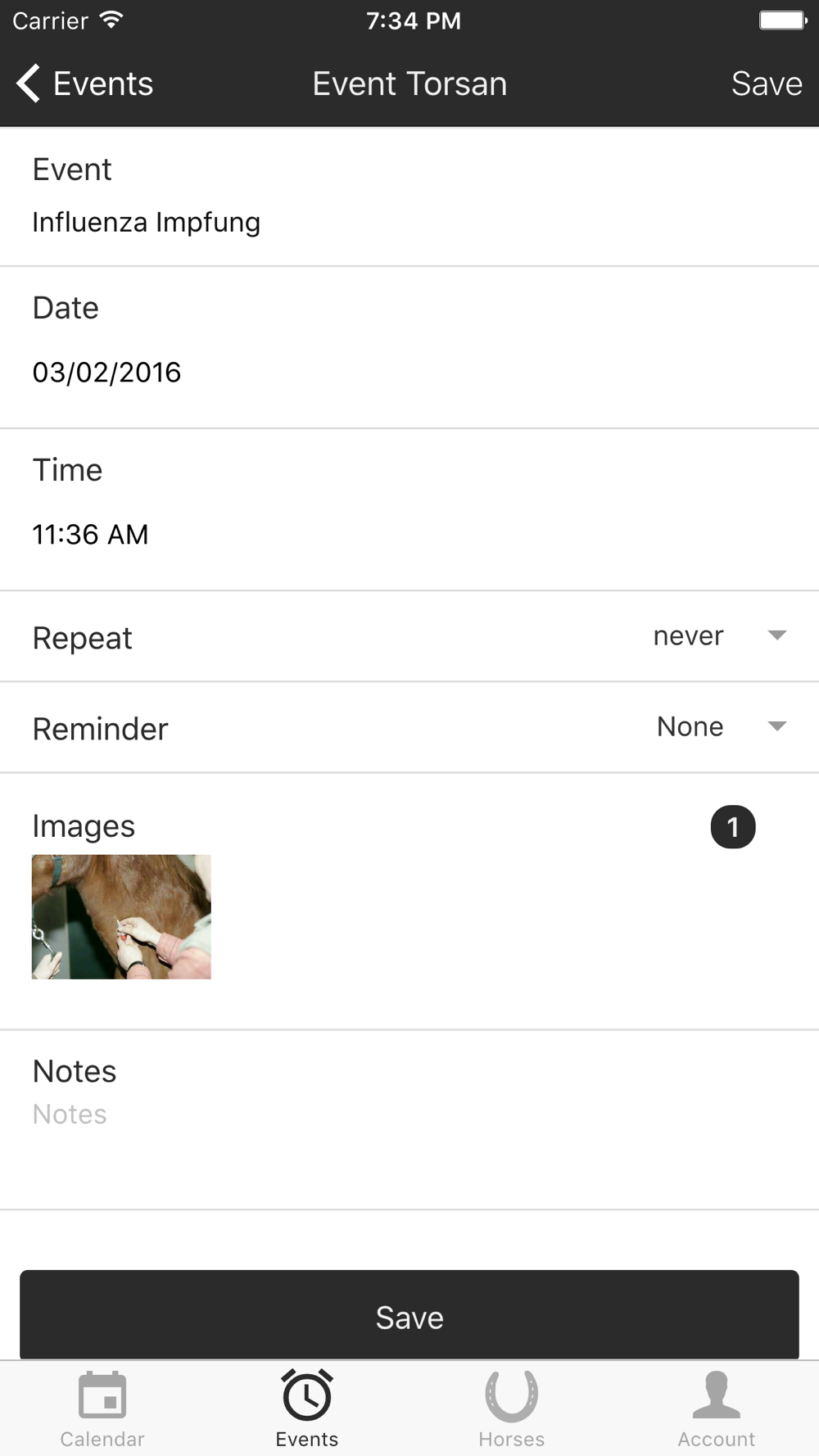 Of course you can manage several horses at the same time. Thus, you will never lose track of your pets. A photo can be added quickly and easily.