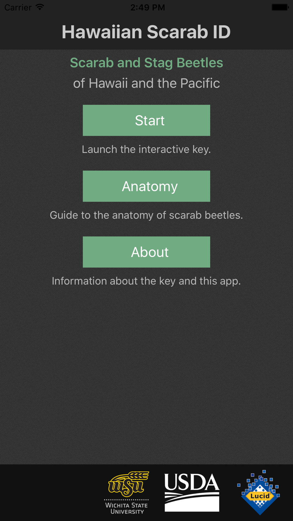 All images were produced by Emmy L. Engasser, except where noted in image captions. The splash screen and app icons were developed by Jackie Baum. Please see the Hawaiian Scarab ID website for proper guidelines for use and citation of images.
