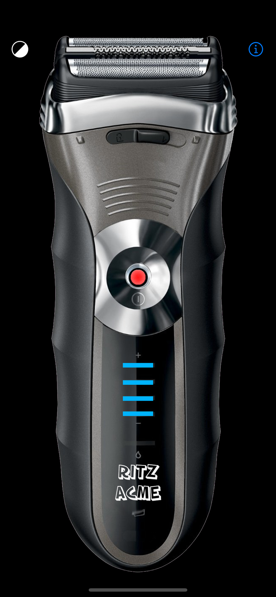 1) Turn on the razor by hitting the power button in the center of the image.