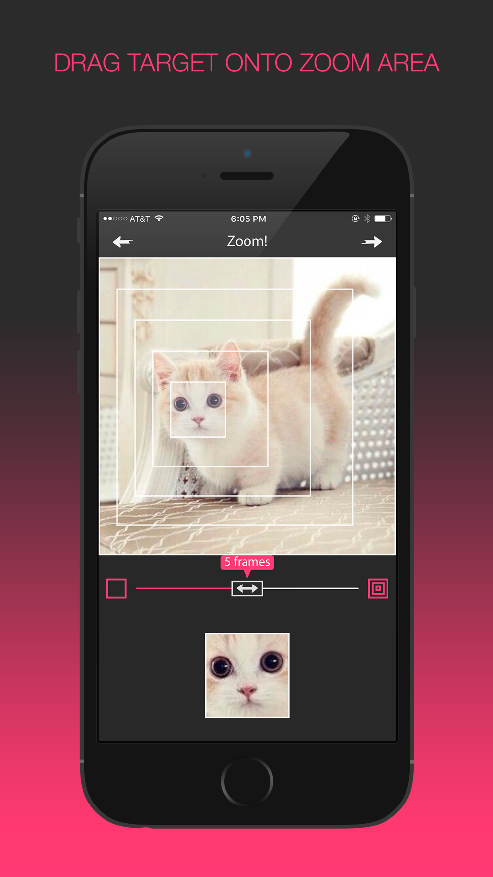 - Set the number of frames for your zooming gif. Use 2 frames for a dramatic A-B switch or 8 frames for a more cinematic effect. (pro tip: 4 frames is usually the funniest.)