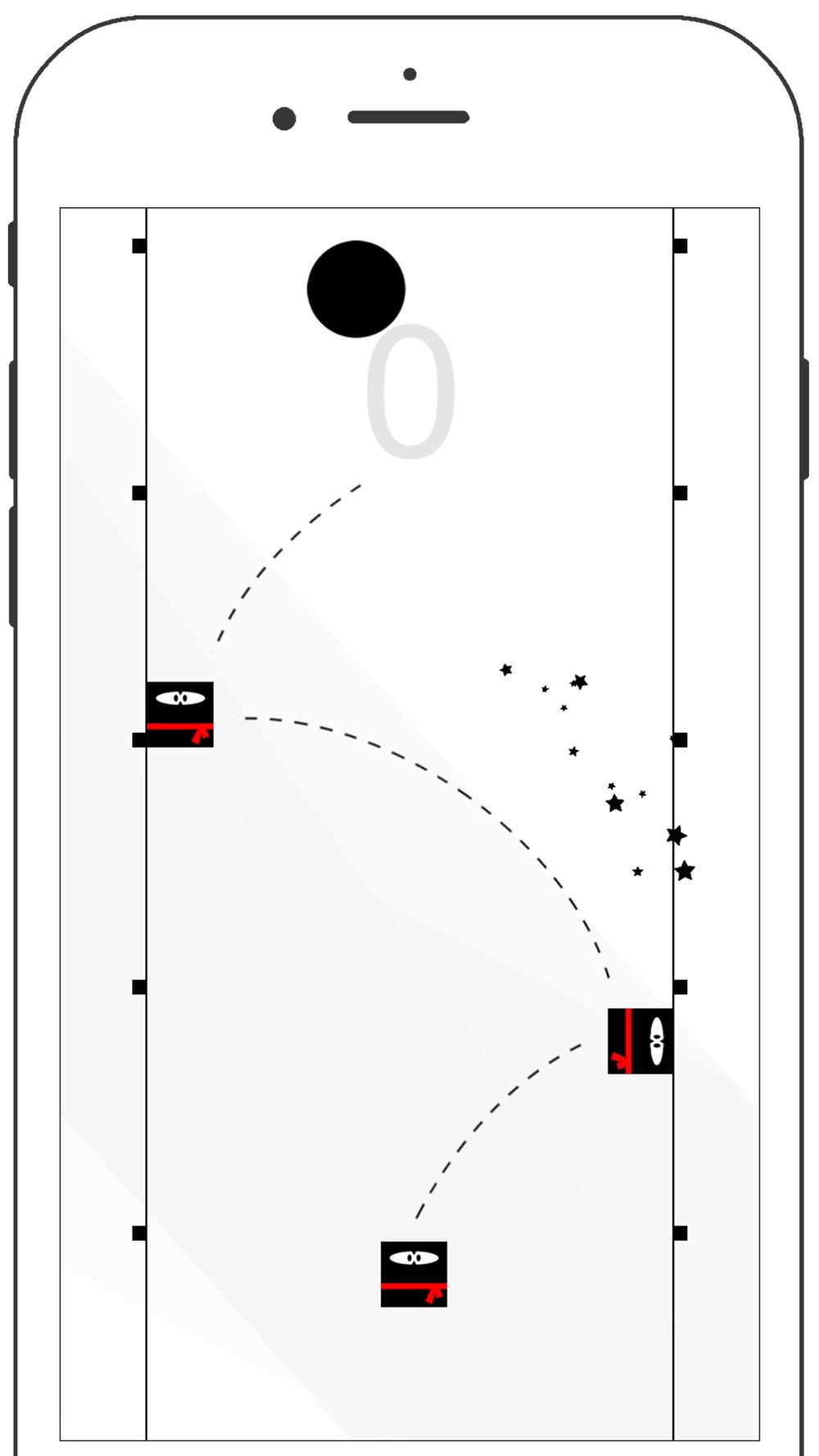 Action: Tap the screen to make ninja jump around, this is not a simple jump, ninja sometimes need to do in order to successfully escape freefall obstacle, but also pay attention to avoid falling obstacles.