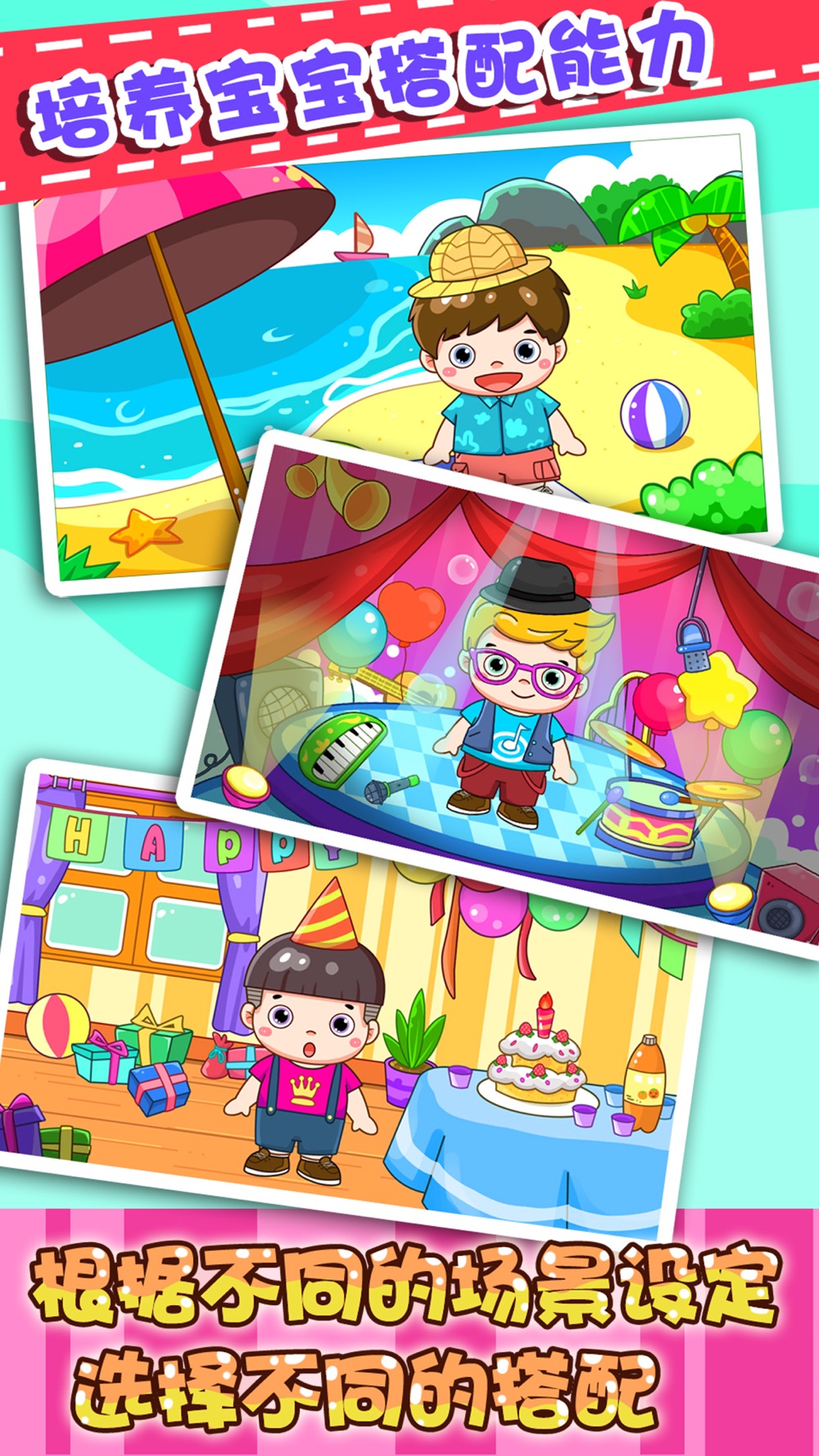 锻炼宝宝根据不同的场合搭配不同的服装,从小培养宝宝的搭配能力,更有各种趣味服装饰品供宝宝挑选,让宝宝