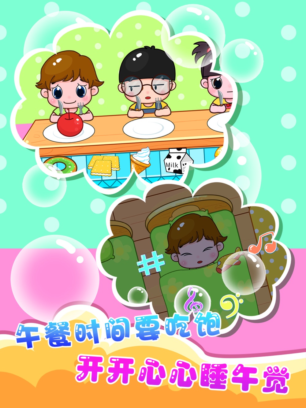 怎样才能让宝宝了解到幼儿园的乐趣之处,克服学前恐惧呢?开心幼儿园模拟宝宝在幼儿园的一天:学知识,吃午饭,睡午觉,玩玩具,做运动。
