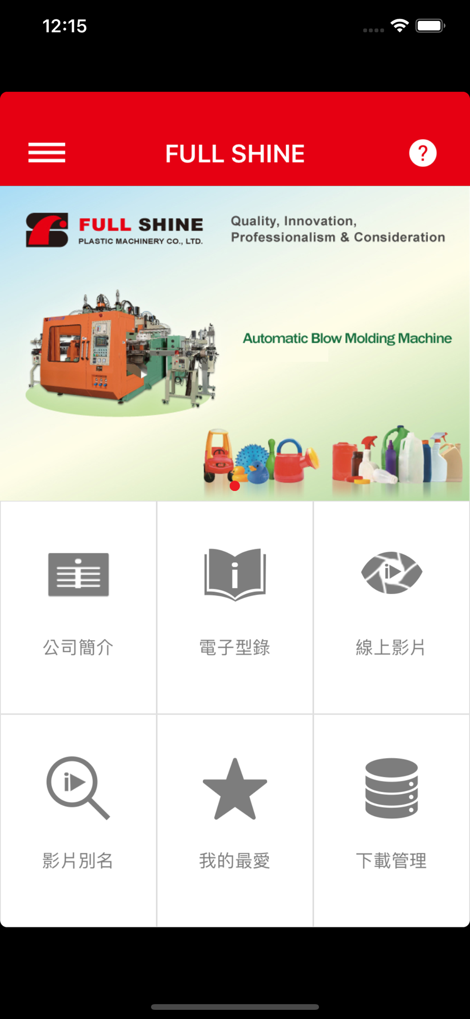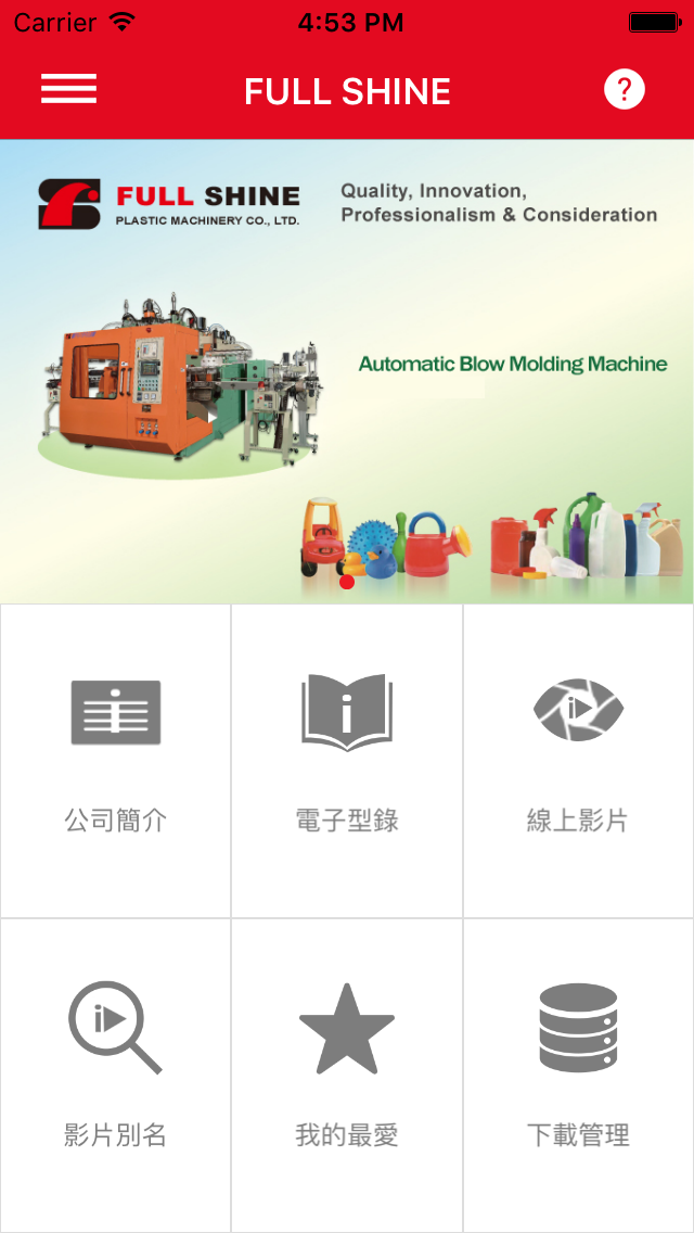 FULL SHINE never stops striving to maintain our regulative concepts. As the most active and competitive manufacturer in Taiwan, FULL SHINE has the ISO 9001 Certificate and CE STANDARD on all machinery. Recently, Full Shine has the close cooperation with the governmental laboratory for developing advanced blow molding technology. In December, 2006, Full Shine was awarded the "Golden Hand Award" by Taiwan government for Full Shine's outstanding achievement in co-extrusion technology.
