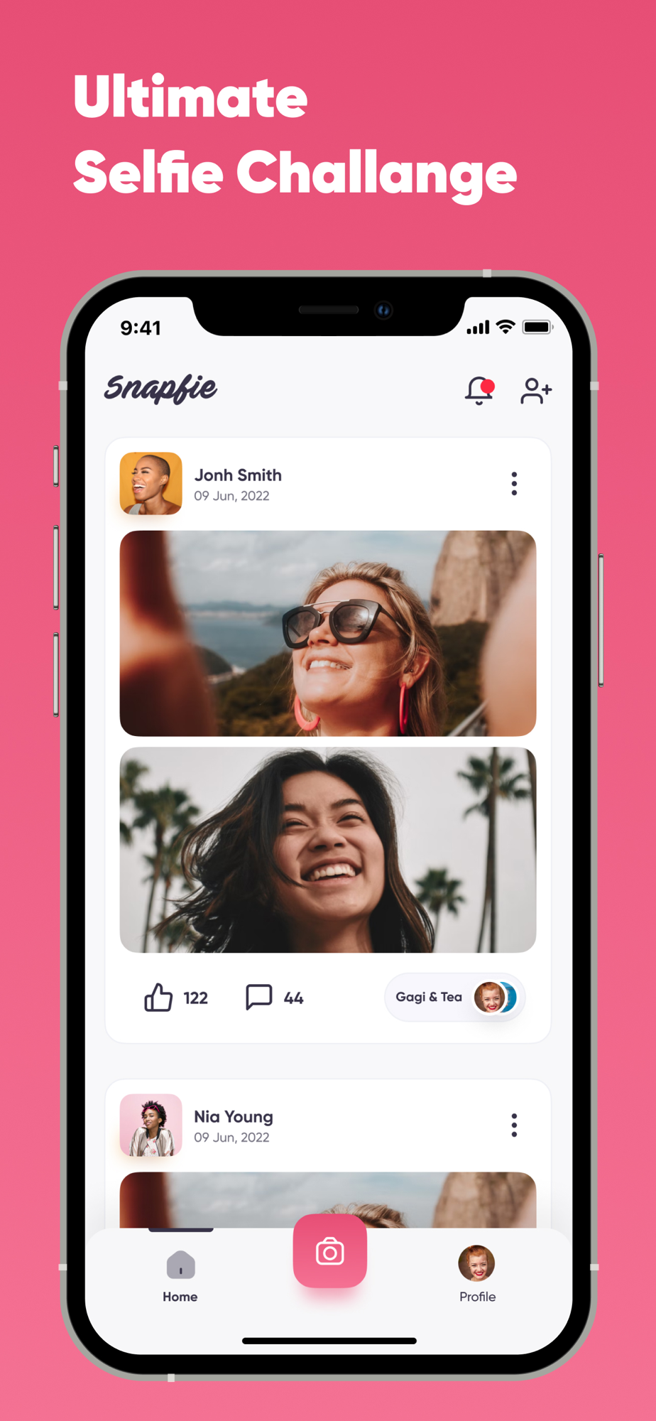 Users are being challenged to participate in Snapfies (an interactive collage) with various titles such as "boring face challenge", "Let's make flirty face", "Morning cup of coffee", "Eyes crossed challenge", etc.. This is a funny way to start conversation after a funny collage, made jointly.