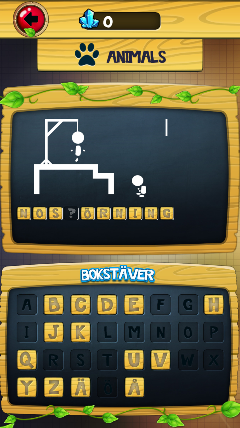 Du har varje bokstav i alfabetet att gissa ett ord. Klicka på ett brev och se om det är en del av det sökta ordet. Du har nio försök innan den lille mannen kommer att straffas.