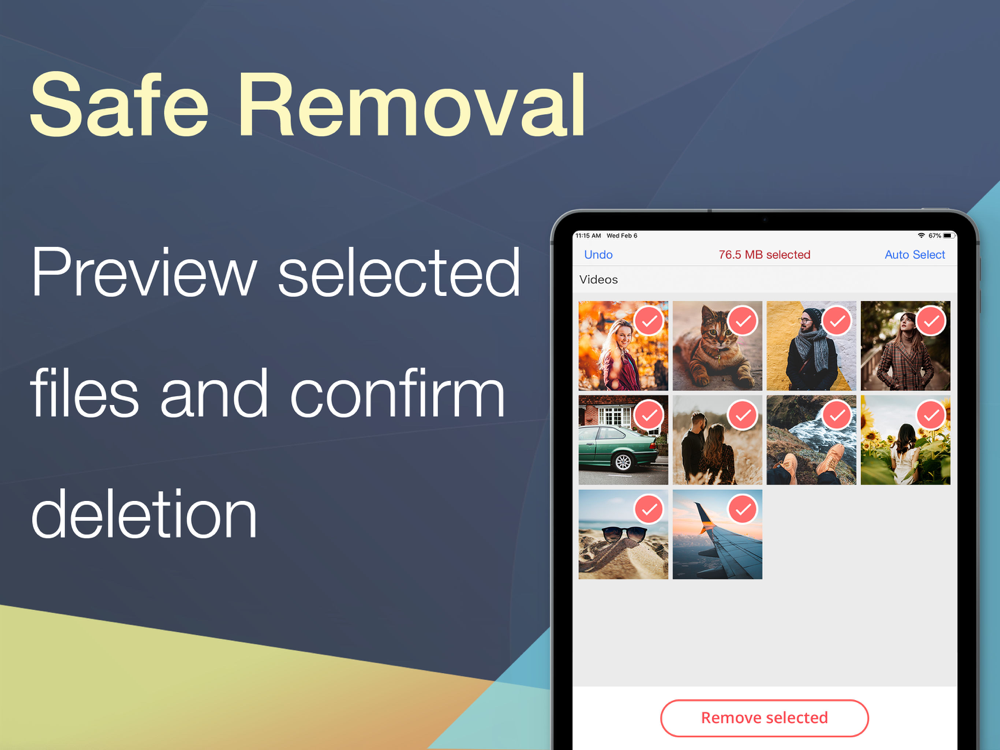 Find and remove the biggest media files, remove unneeded duplicate photos to free up space on your phone.