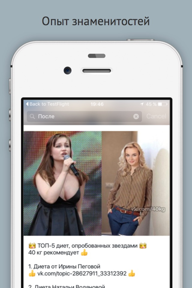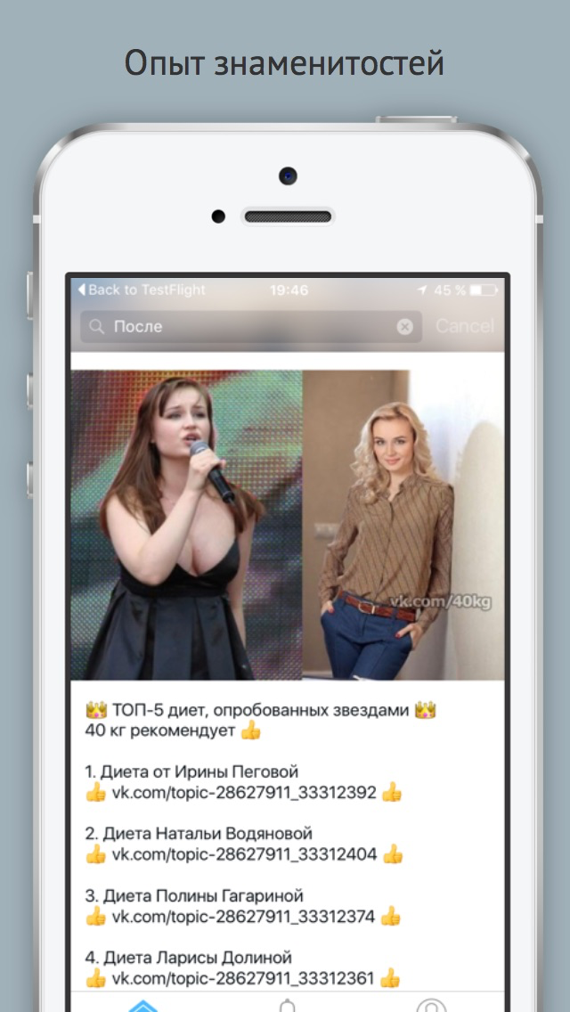 В нашем приложении вы найдете все советы, которые нужны для грамотного и простого избавления от лишнего веса. Мы поможем вам войти в лето красивой и бодрой. Советы таких же людей как вы, опыт звезд, рекомендации по питанию и спорту.