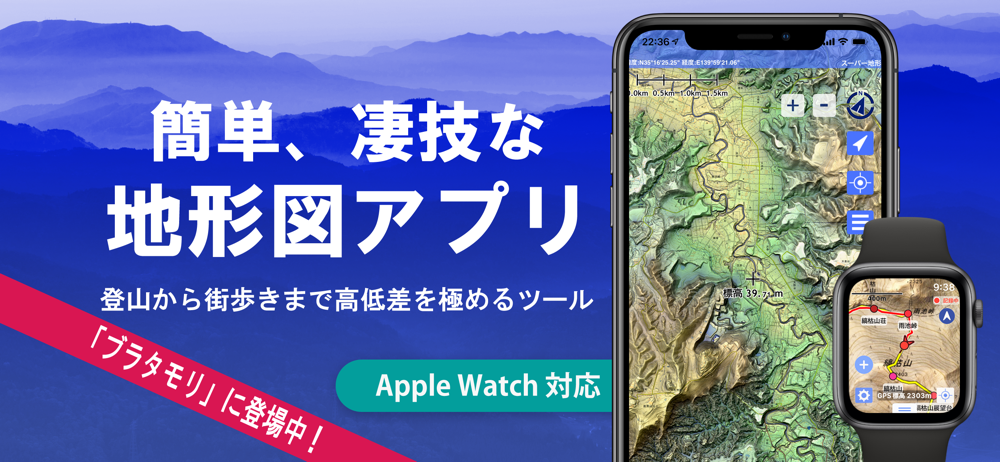 ●TV番組『ブラタモリ』でも使用されている、地形にとことんこだわった地図が使えるアプリです。