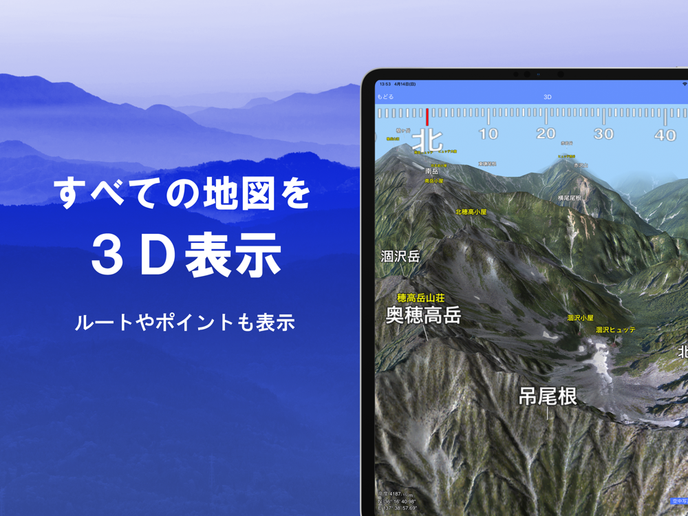- 登山ナビにも最強。アウトドア・オフライン地図・3D対応。究極のGPS機能を搭載。