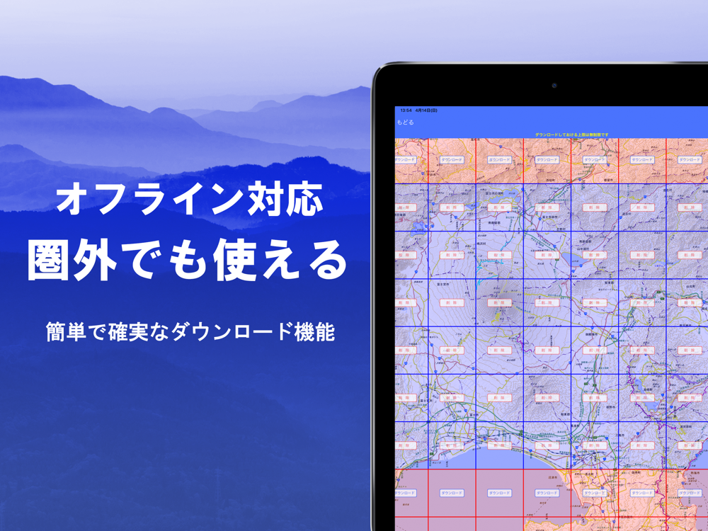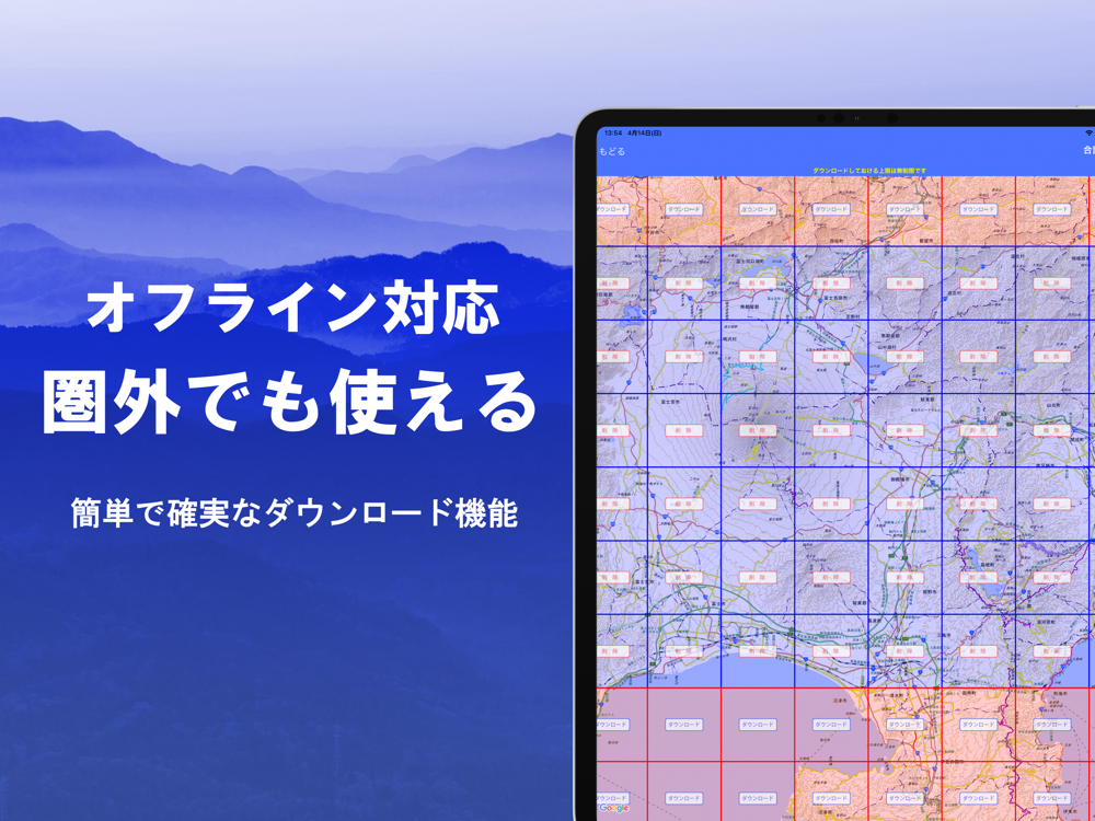 区画単位でダウンロードできますので、あらかじめ必要なところを用意しておくことにより、現地での確実な使用が可能です。