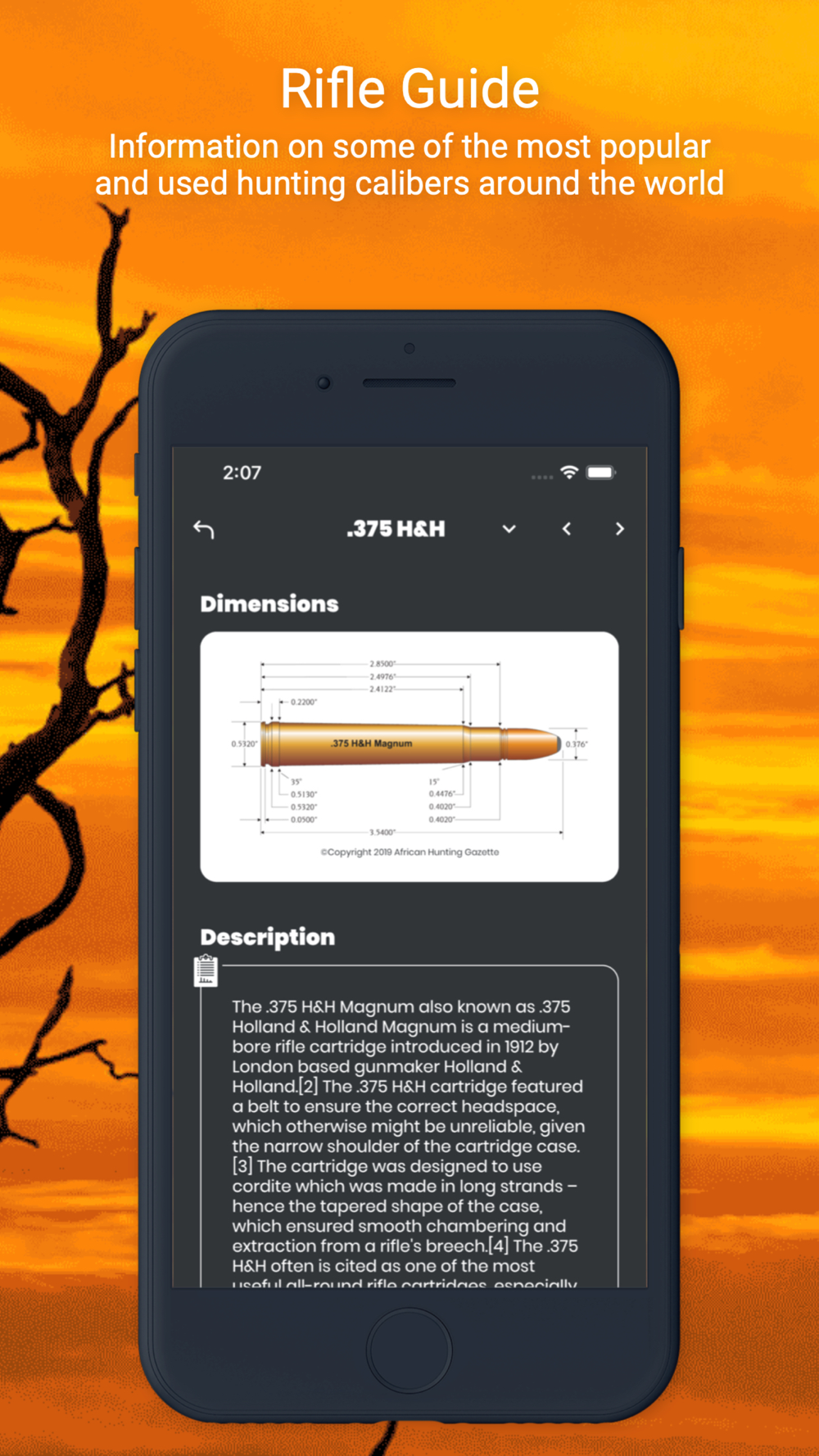 - Rifle Guide that gives the hunter information on some of the most popular and used hunting calibers around the world