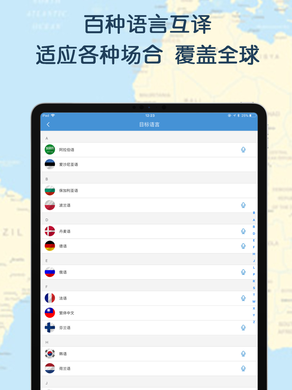 “外面的世界很精彩,外面的世界很无奈”。不会外语,去哪里都很尴尬。只要有了翻译工具,无论在世界的哪个角落,都不必担心语言问题,多种语言翻译功能能够让你说走就走。