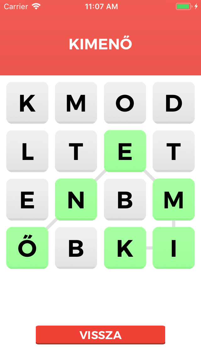Alkoss értelmes szavakat a képernyőn látható betűkből, de csak a szomszédos mezőket érintheted (akár átlósan is).