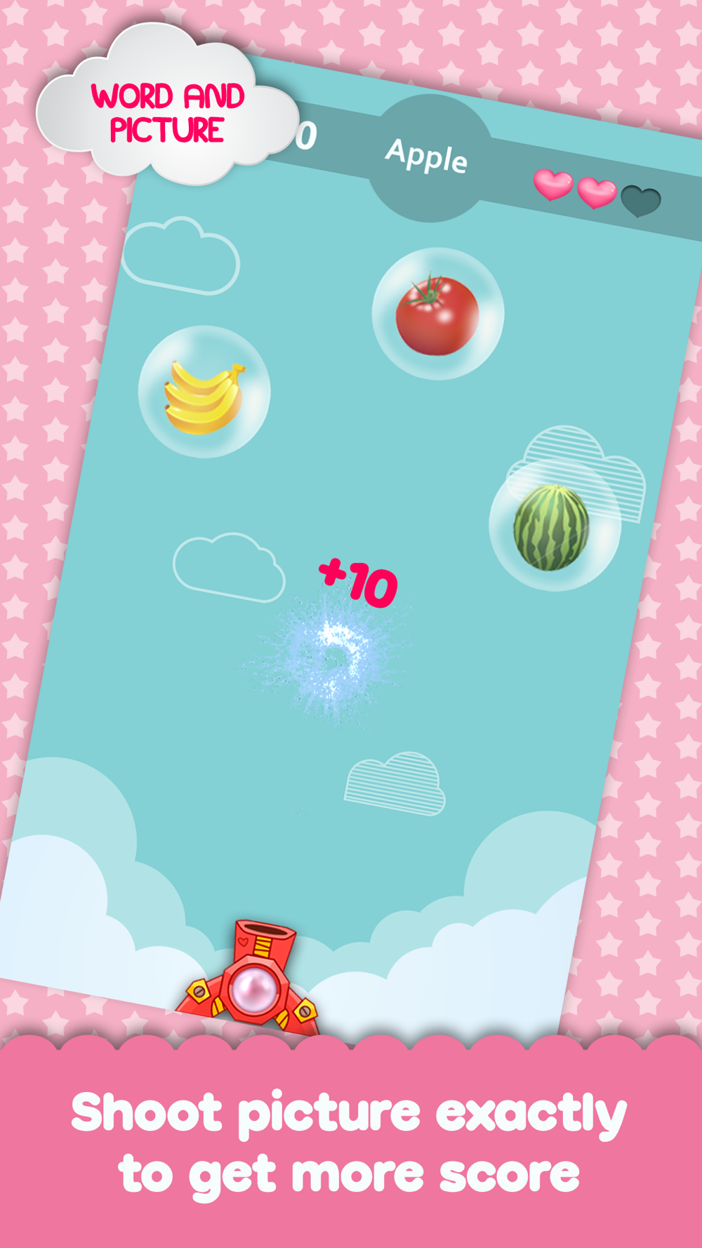 This is one game simple but very interesting to keep you entertained. You listen and look from being out and select. Then use cannon (gun) shot the ball into the image coincides with that word.