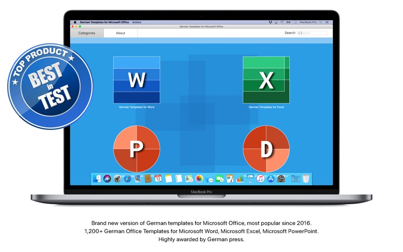 The app includes complete content of German Templates for Word, German Templates for Exel and German Templates for PowerPoint! (also available in Mac AppStore)
