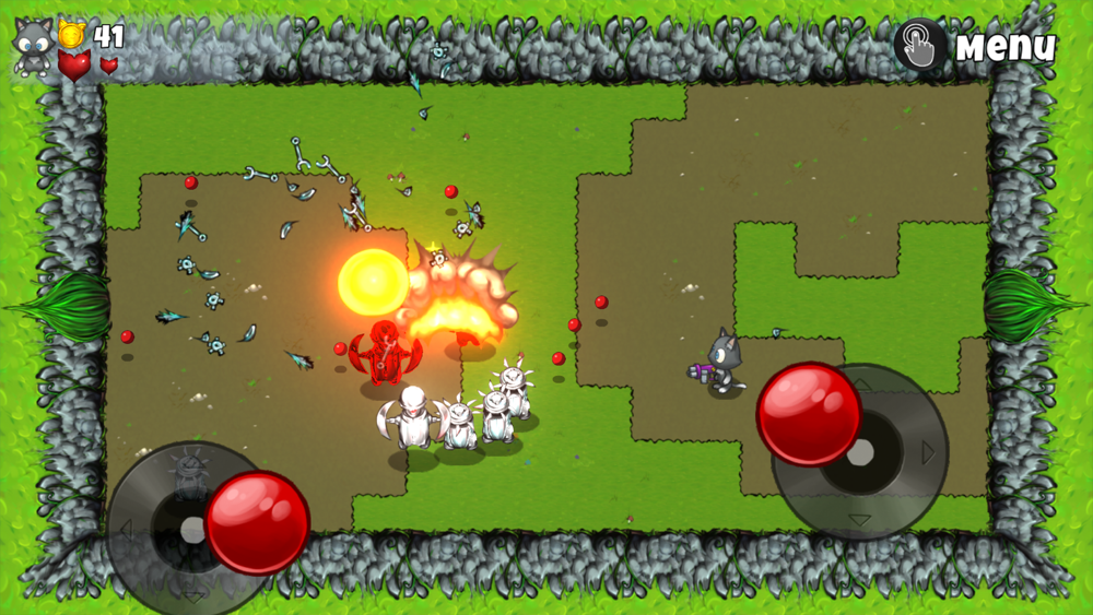 Players must guide the Kitten Squad, armed with weaponry ranging from carrot rocket launchers to yarn ball guns, on missions to defeat the evil robots and free the animals.