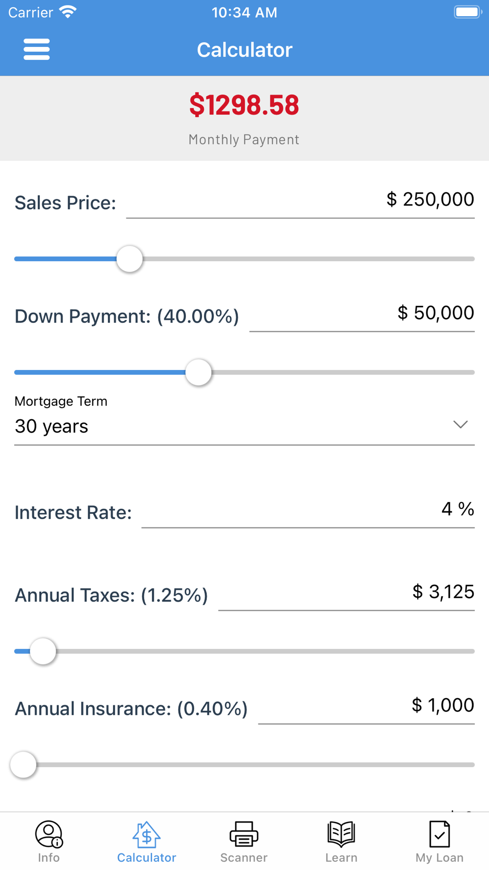The My Mortgage by Ross Mortgage app calculations are a useful tool to give you an