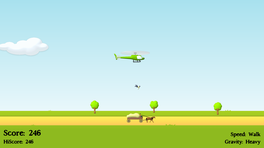 Haven't you always wanted to fly in a helicopter? Then jump out without a parachute? And hope you land in a hay wagon? Then you're going to love this game.