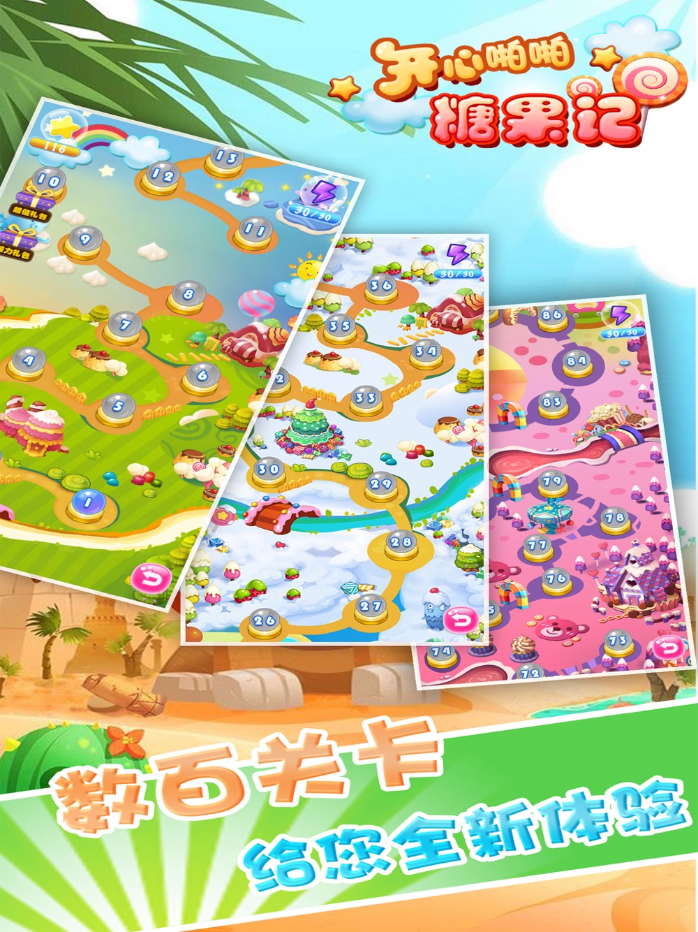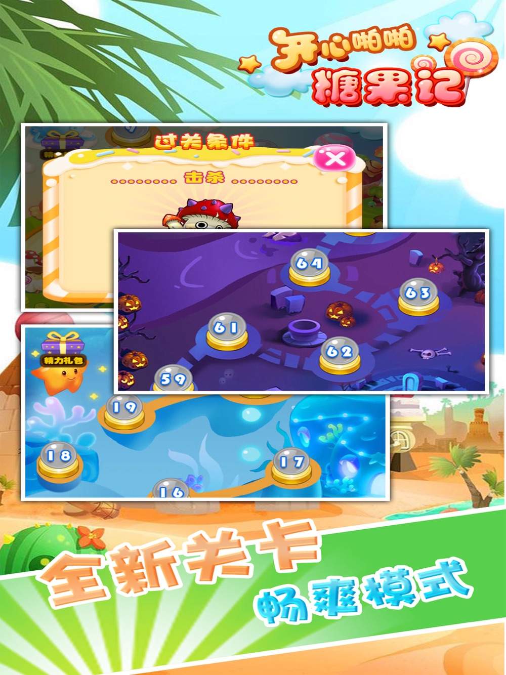 开心啪啪糖果记是一款全新关切给你不一样消除乐趣的糖果类游戏,本作是2000万玩家推荐的全民一起休闲的游戏,本作将采用最畅爽的连线玩法来进行,更有丰富的道具供你使用呢,快来闯关吧。