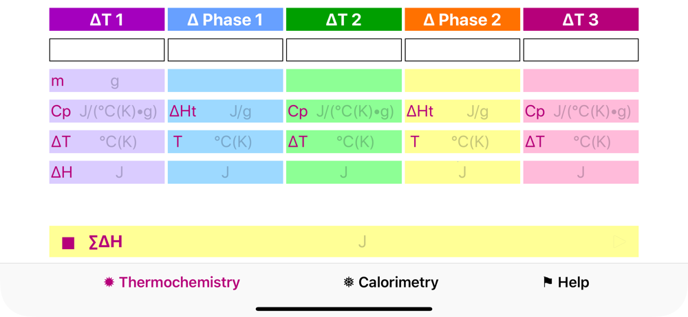Thermochemistry helps in evaluation of enthalpy or heat release/absorption of a system undergoing numerous temperature changes and phase transitions. The calculations take advantage of known values of heat capacity at constant pressure (Cp) and molar or per gram enthalpy of phase transition. Amount of compound can be defined in grams or moles, in a way that Cp and enthalpy units would match.