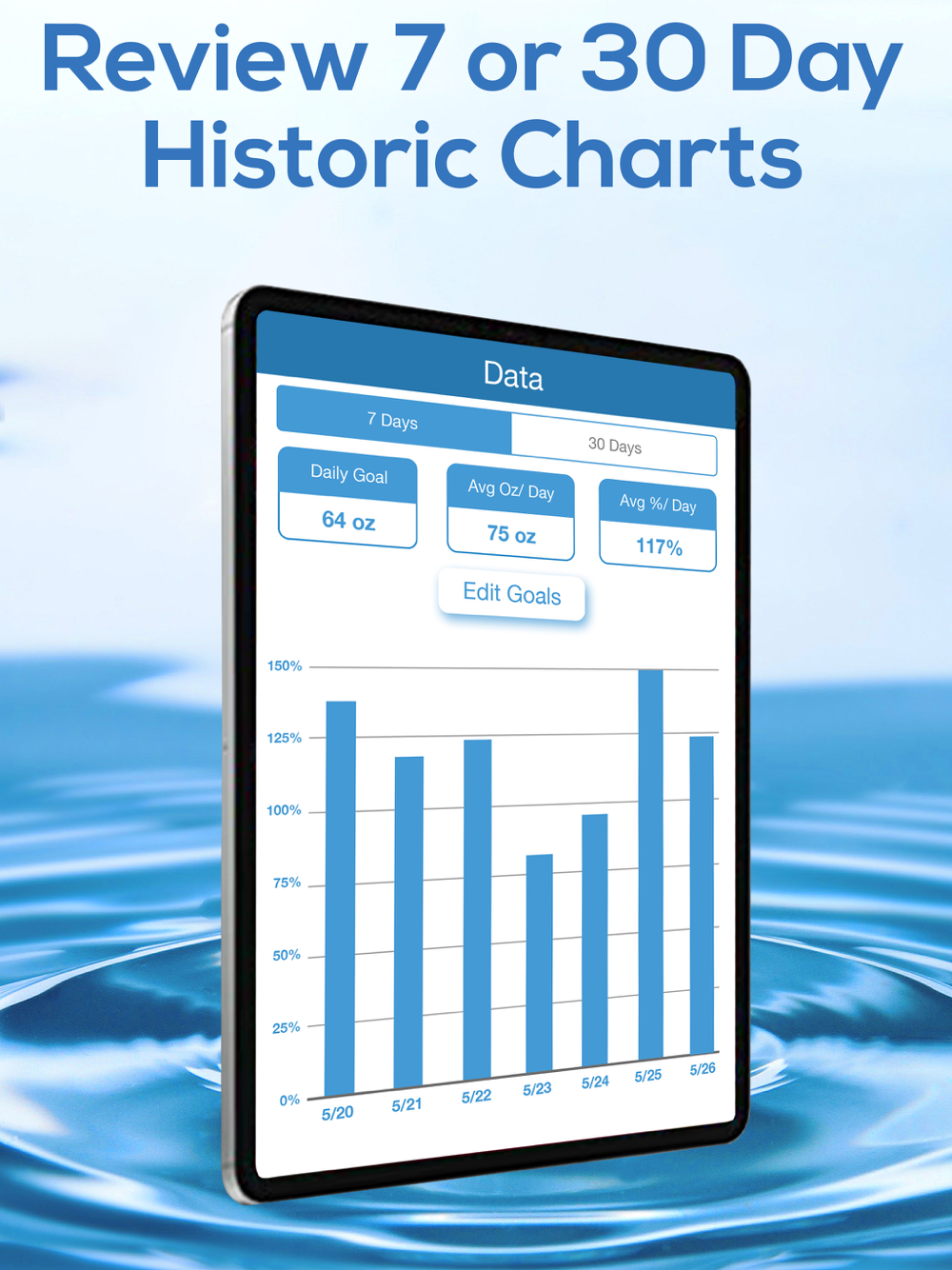 You will get ongoing monthly access to your water intake data and ability to customize and edit your preferred settings.
