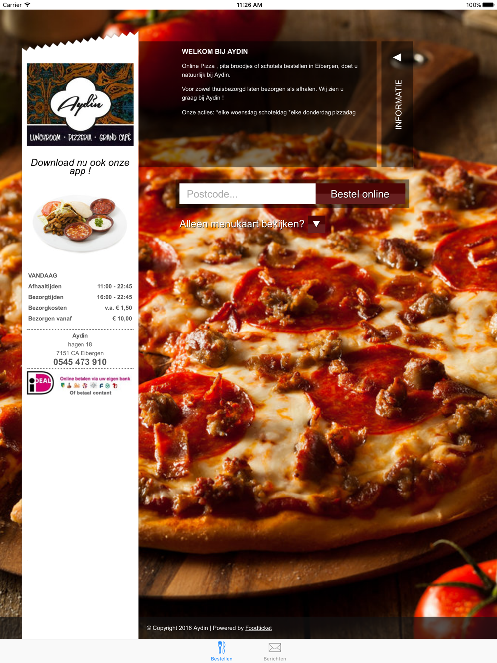 Met de Aydin app bestel je veilig en snel de lekkerste pizza, pitabroodjes, schotels en meer van Eibergen en omstreken. Direct online betalen via je eigen bank met iDEAL!