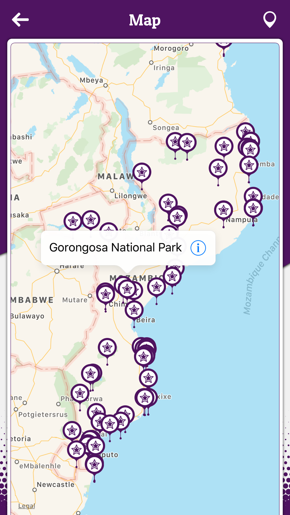 ◆ Map : Locates the Mozambique and the user location on map. Once the user opens the Map, it points us the all Hotels and Attractions of Mozambique. Has the call option and can check the address of the Hotel or Attraction. GPS facility is enabled to show the directions and route map.