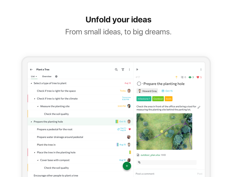 Whether it's for developing a cool app, launching a new product, or making a masterpiece film, Quire is there to help boost productivity for you and your team.